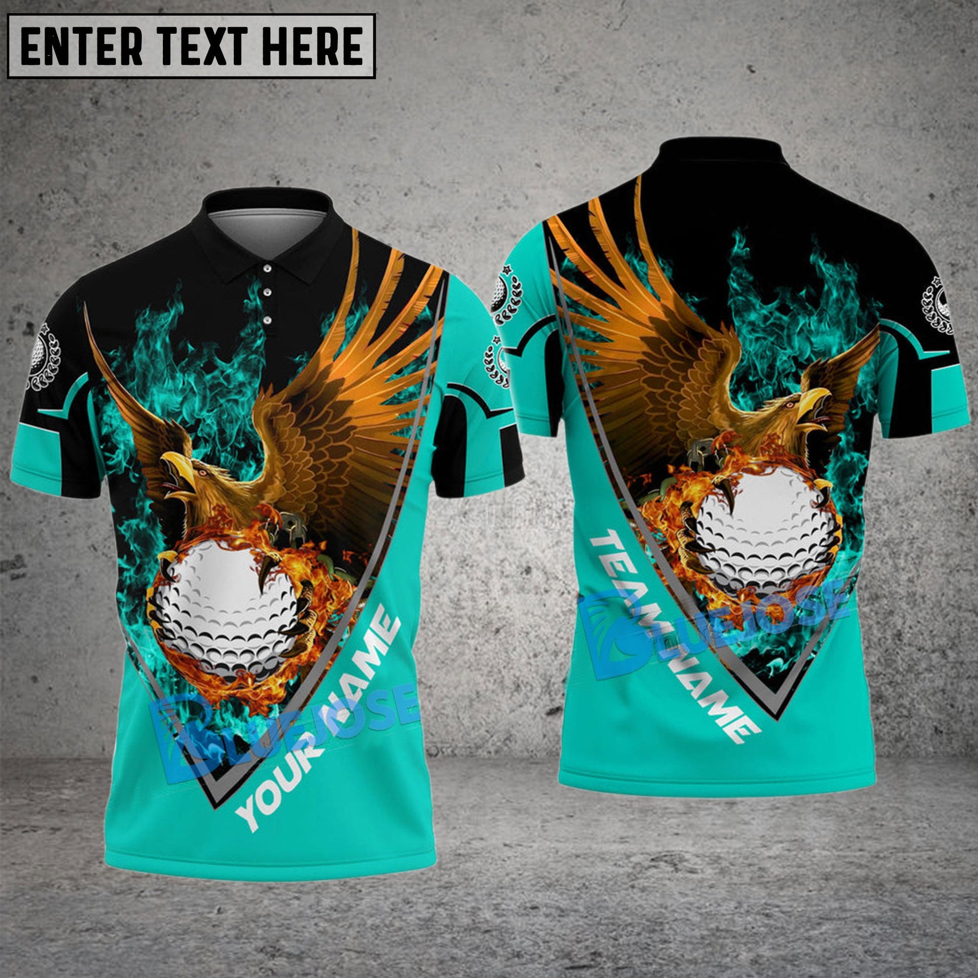 BlueJose Golf Fire Raging Eagle Customized Name, Team Name 3D Shirts (4 Colors)