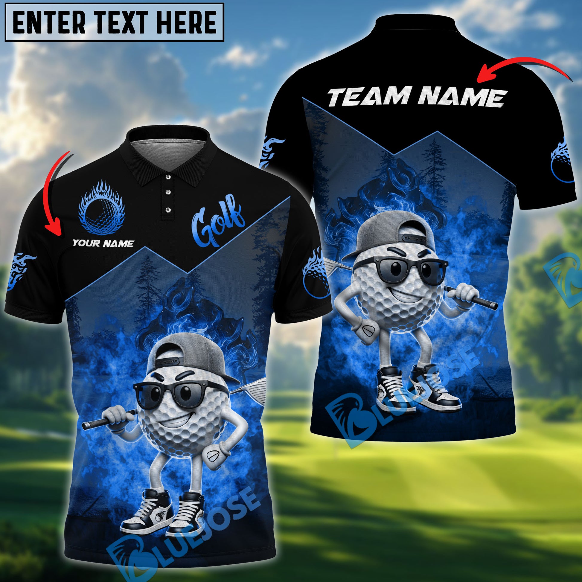 BlueJose Golf Funny Ball Multicolor Customized Name, Team Name 3D Shirts (4 Colors)