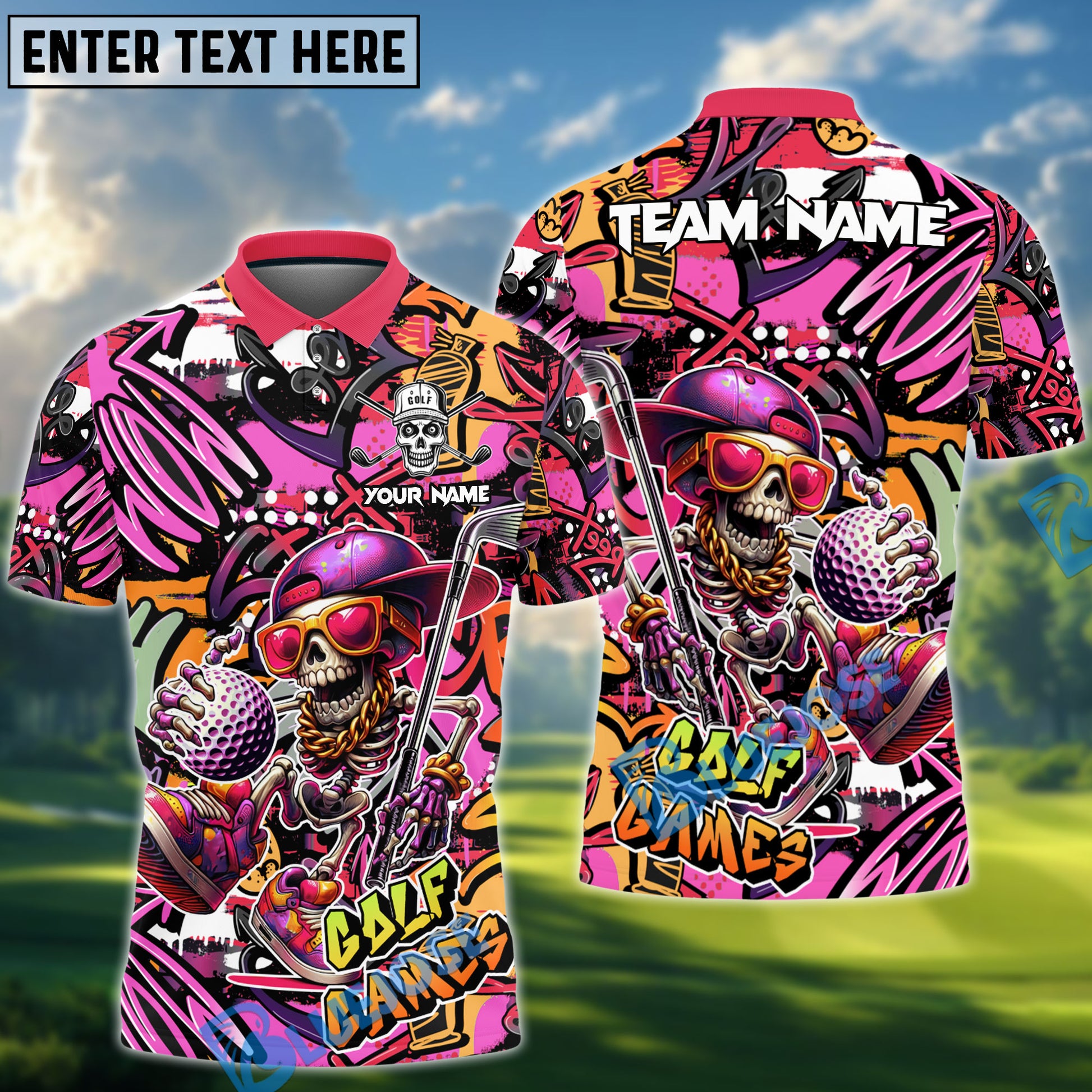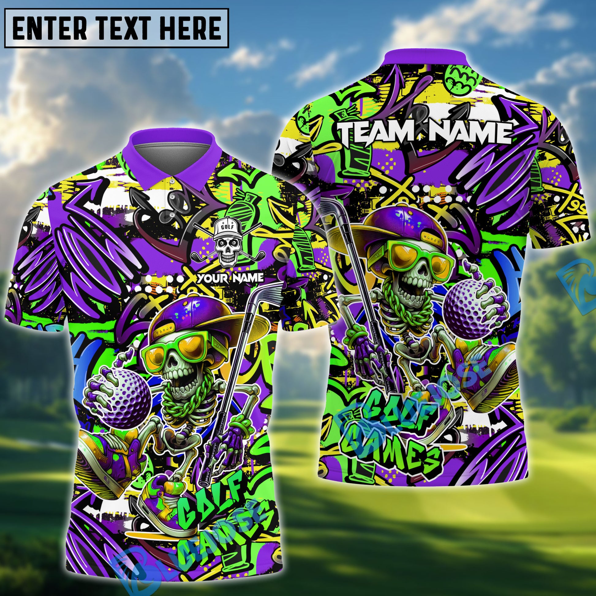 BlueJose Golf Funny Skull Colorful Graffiti Customized Name, Team Name 3D Shirts (4 Colors)