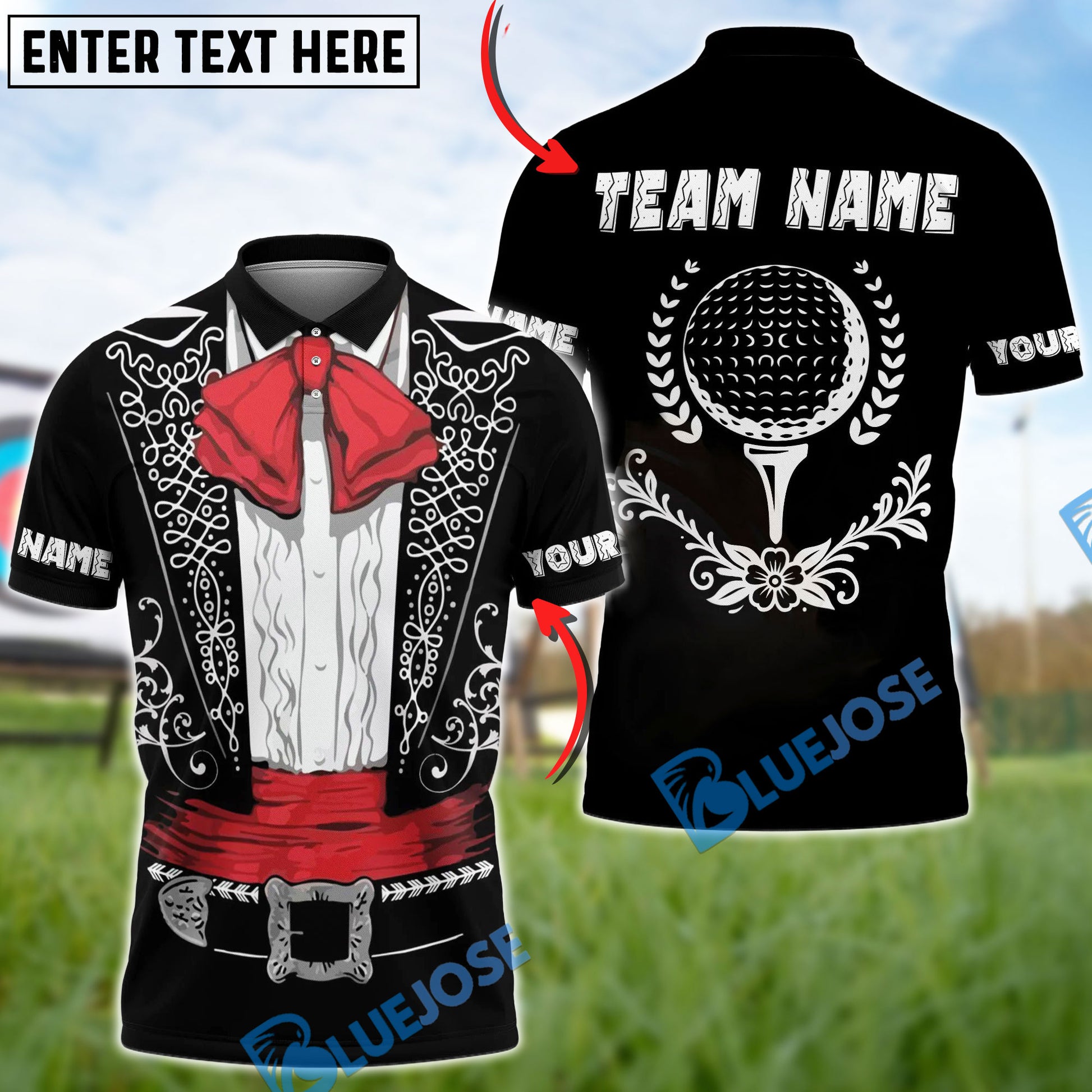 BlueJose Golf Mexican Suit Golfer Polo Shirt Custom Name & Team Name 3D Shirts