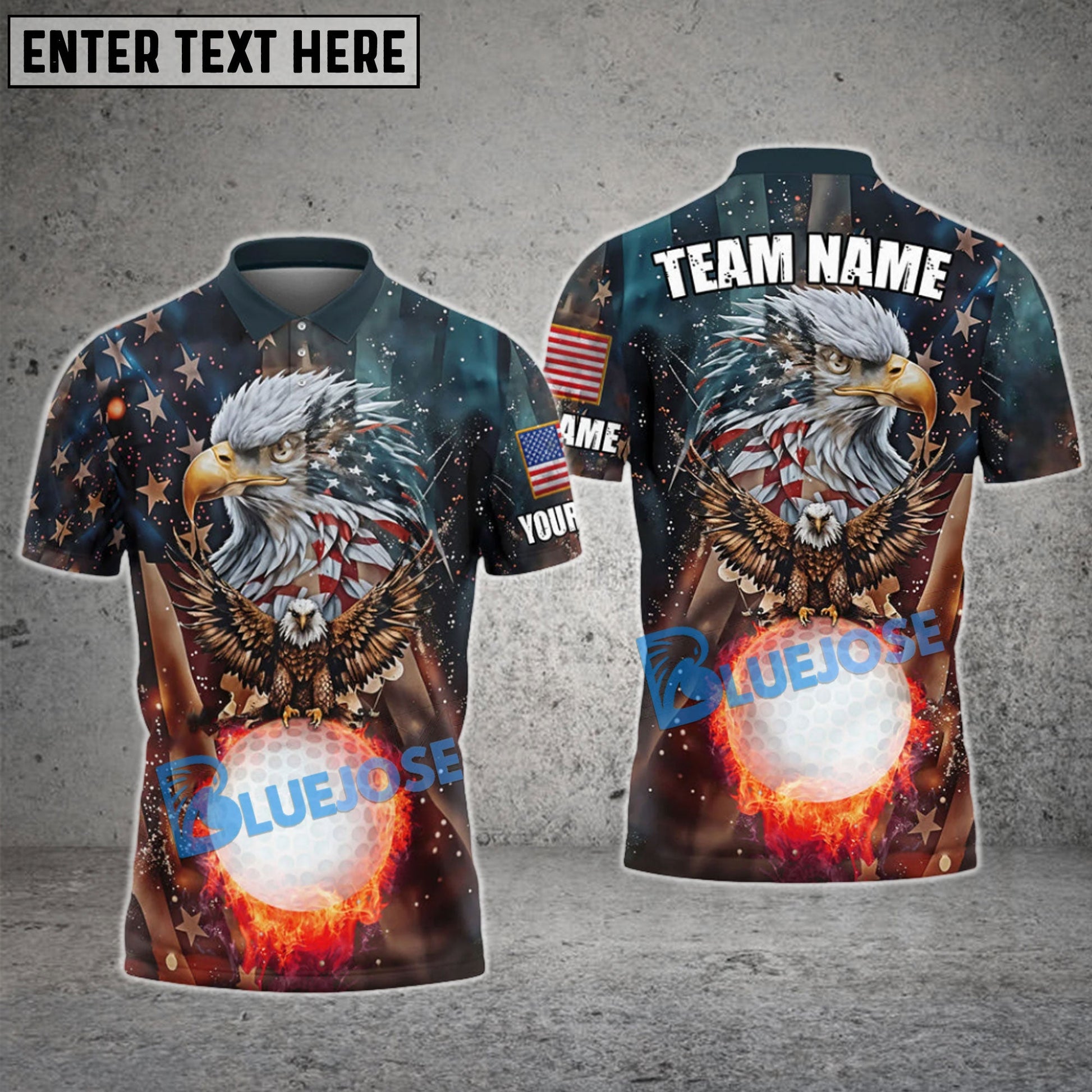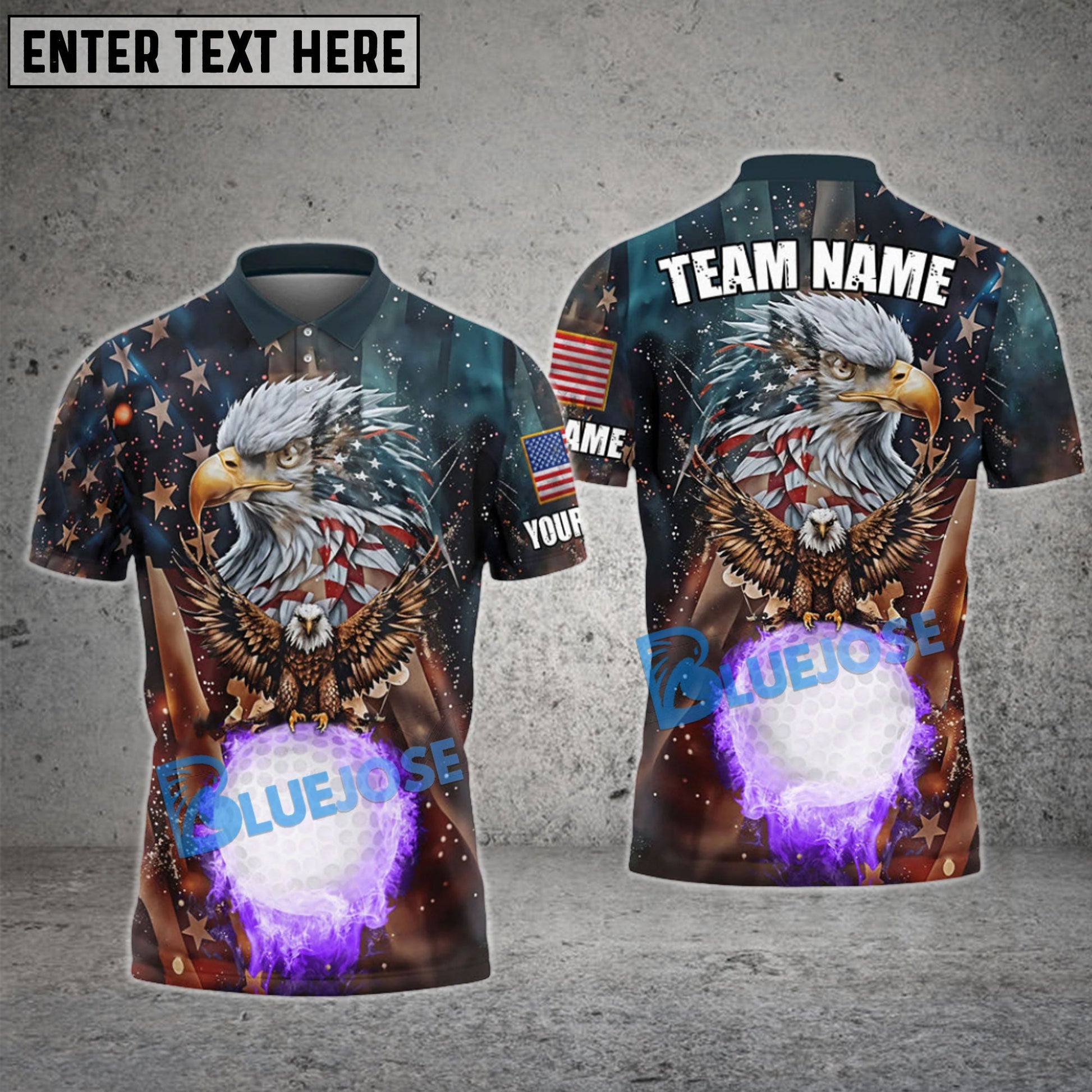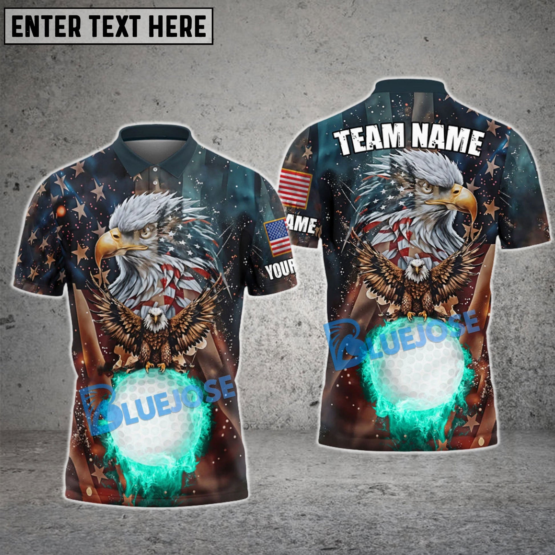 BlueJose Golf Retro USA Eagle Pattern Customized Name, Team Name 3D Shirts (4 Colors)