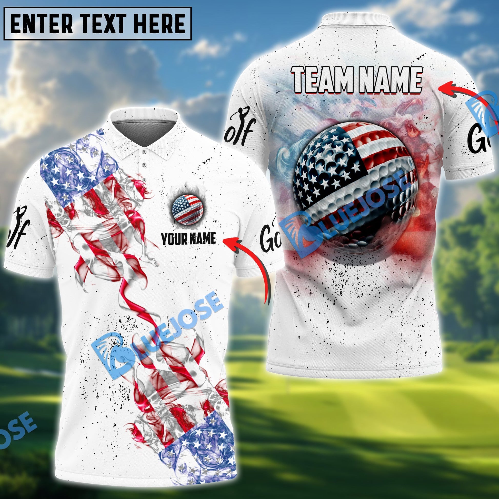 BlueJose Golf Smoke Grunge US Flag Customized Name, Team Name 3D Shirts (4 Colors)