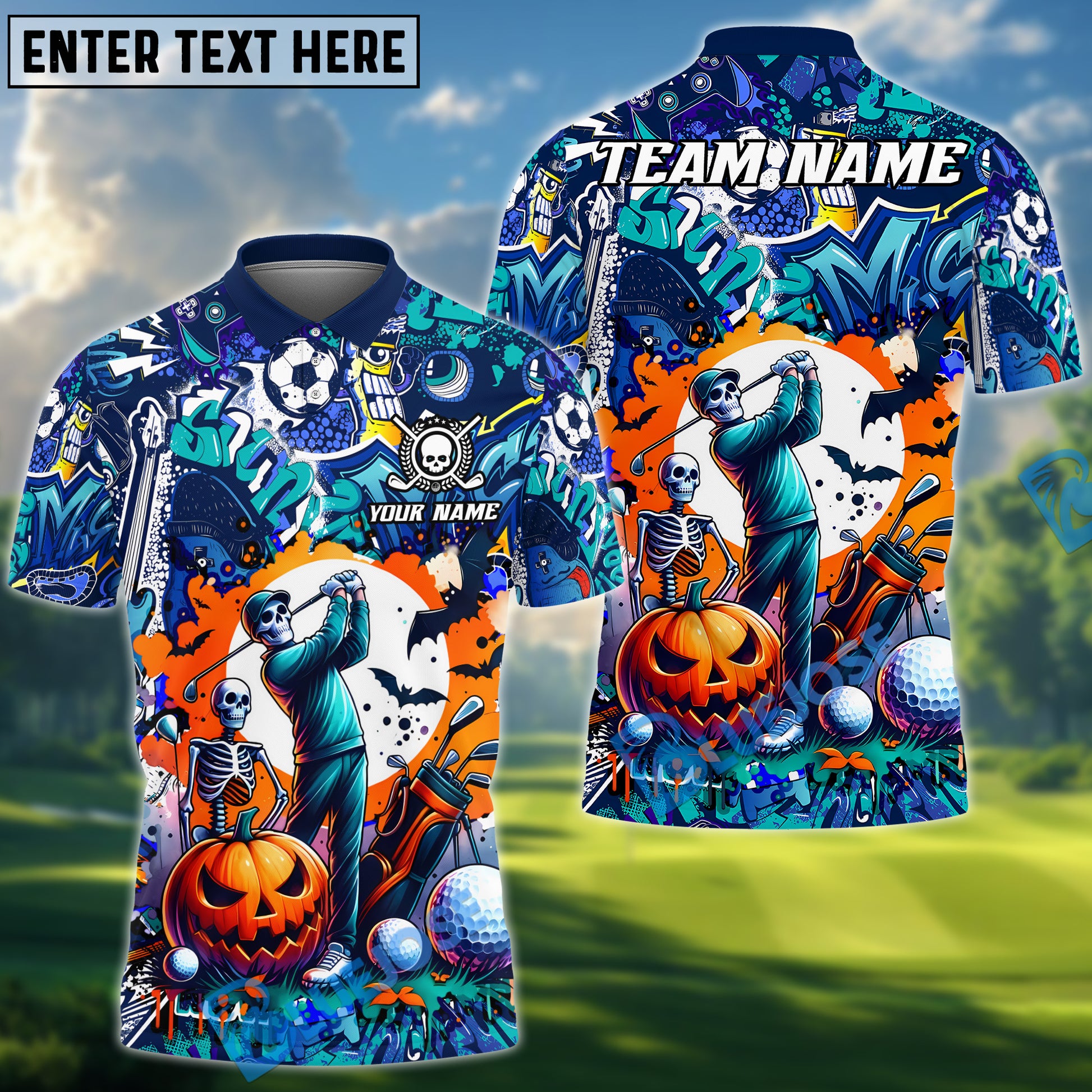 BlueJose Graffiti Halloween Skull Golf Polo Shirt, Custom Name & Team Name 3D Shirts