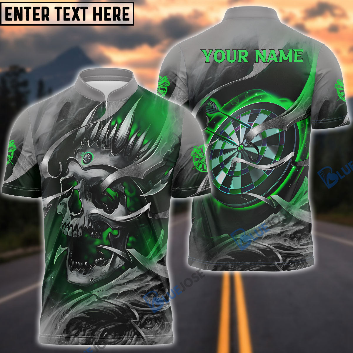 BlueJose Green Skull Dartboard Personalized Name 3D Shirt