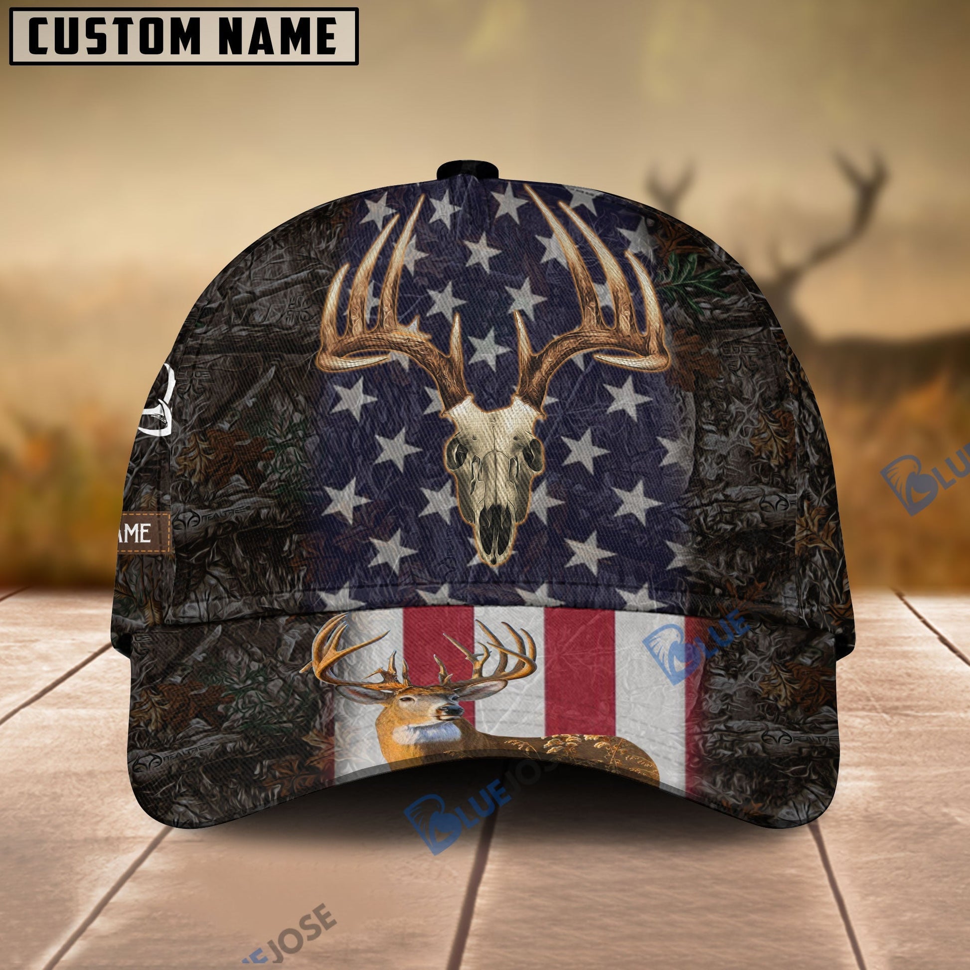 BlueJose Hunting US Flag Pattern Personalized Name Cap