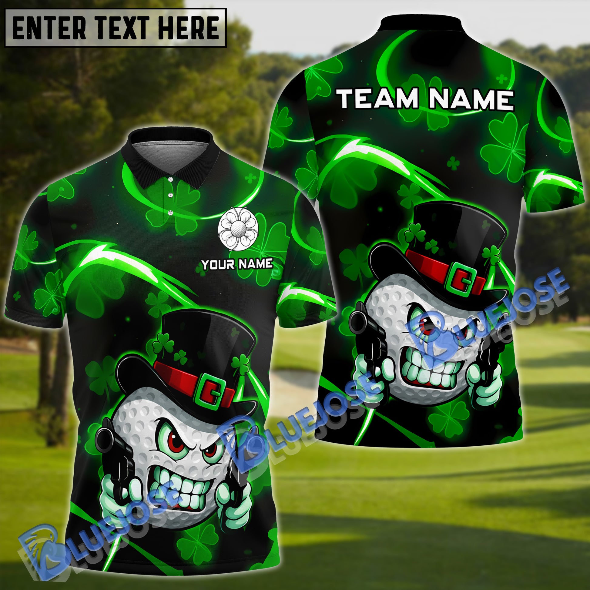 BlueJose Irish Cowboy St. Patrick Day Golf Polo Shirt Customized Name, Team Name Shirts