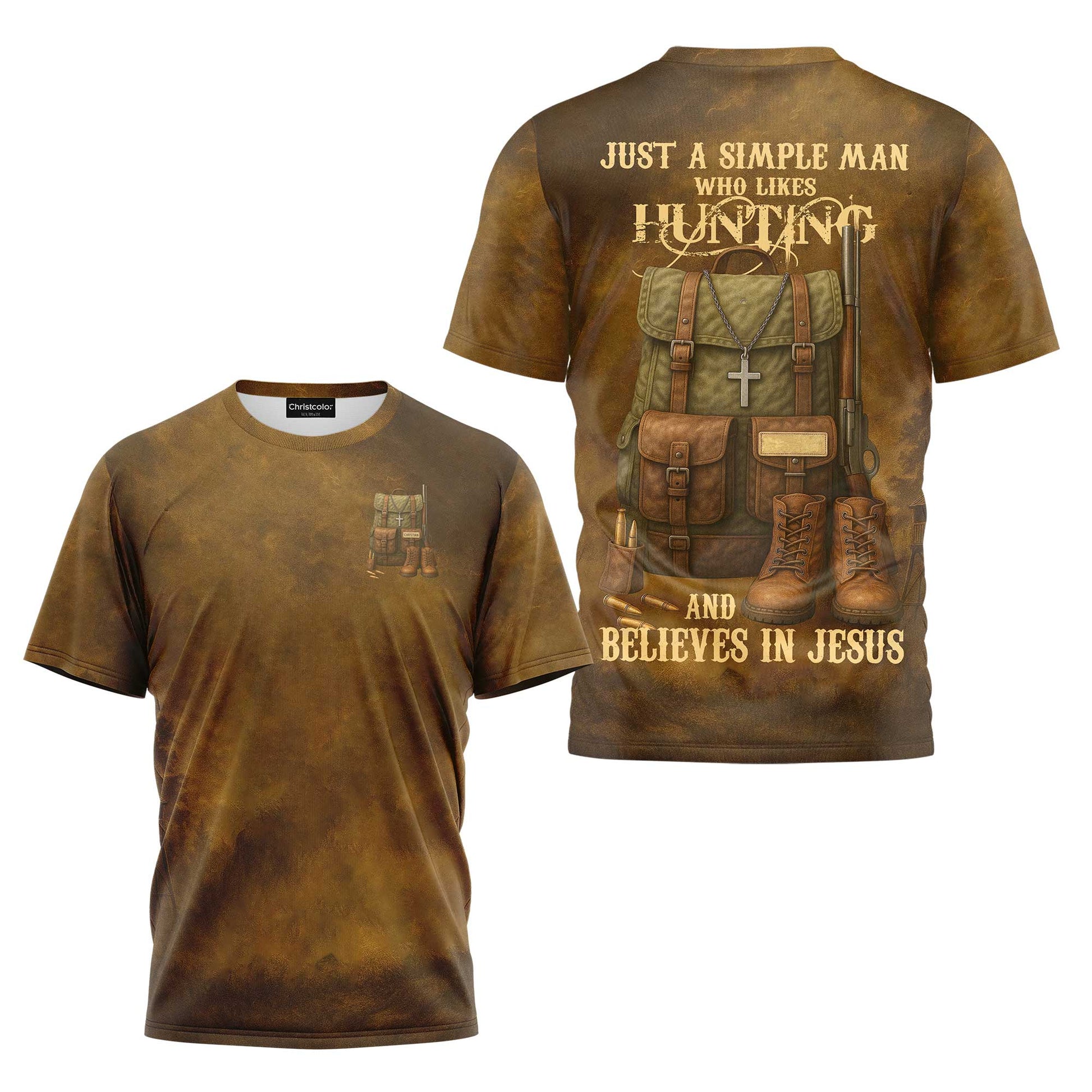 BlueJose Just A Simple Man Who Likes Hunting And Believes In Jesus, Personalized Hunting 3D Shirt