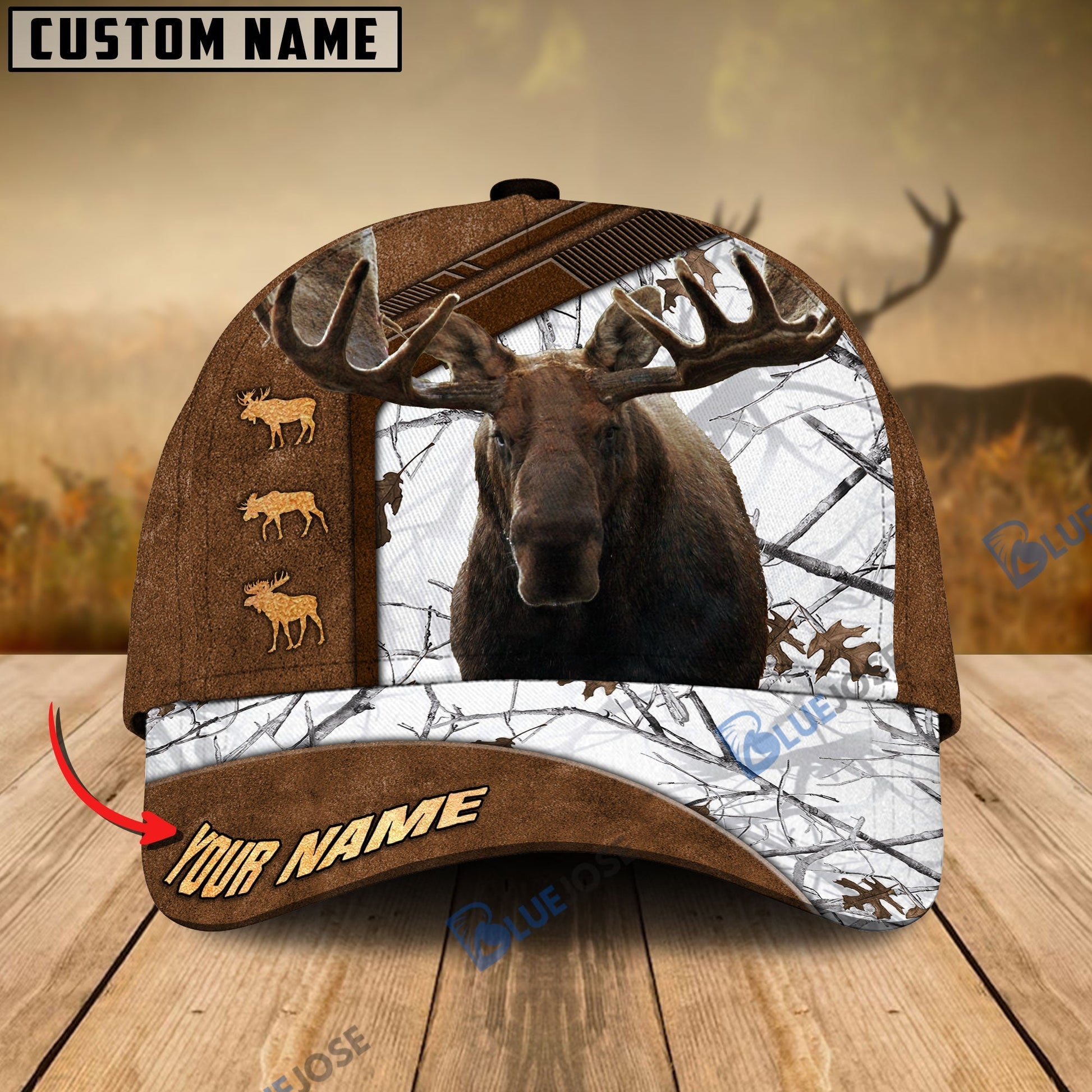 BlueJose Moose Hunting Premium Brown Pattern Custom Name Cap