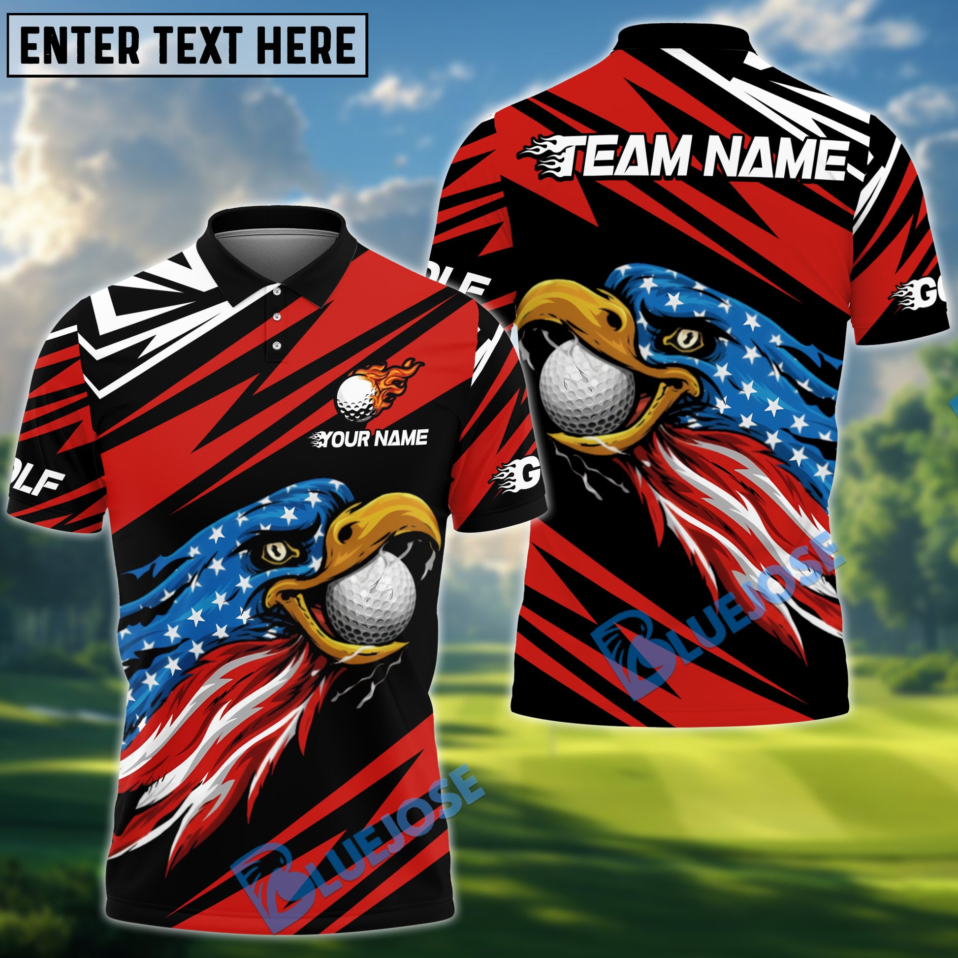 BlueJose Patriot Eagle Golf Polo Shirt Customized Name, Team Name Shirts