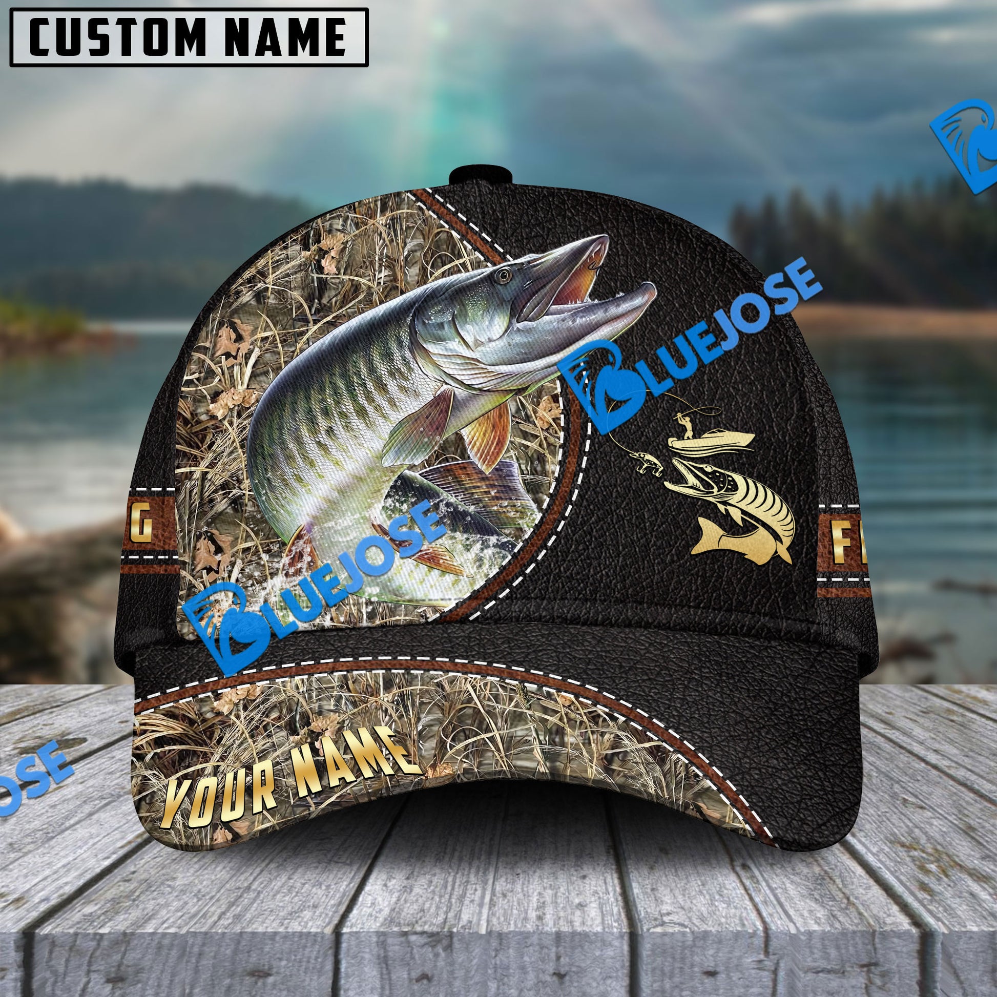 BlueJose Personalized Musky Black Leather Camo Pattern Fishing Classic Cap