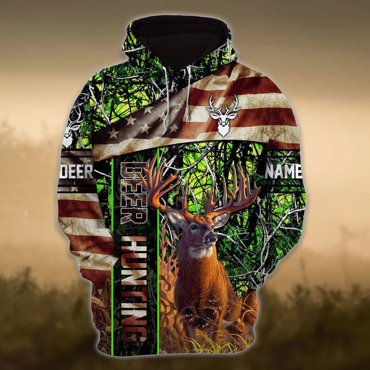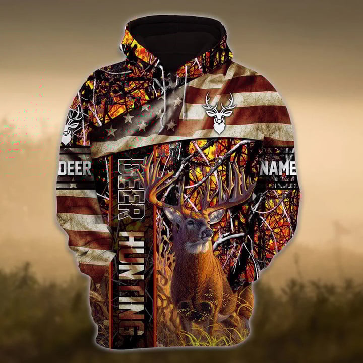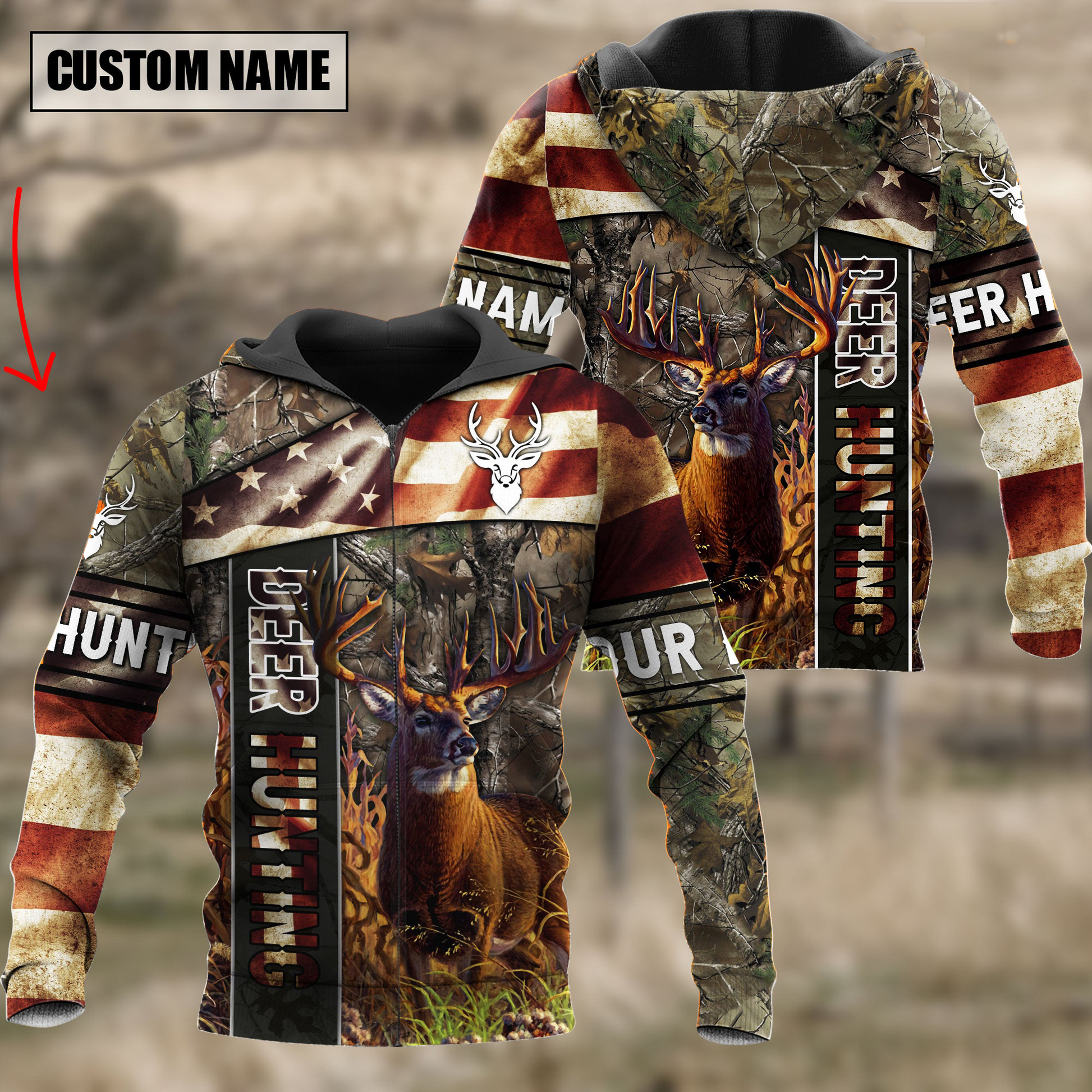 BlueJose Personalized Name American Deer Hunting Hoodie & Zip Hoodie 3D Multicolor