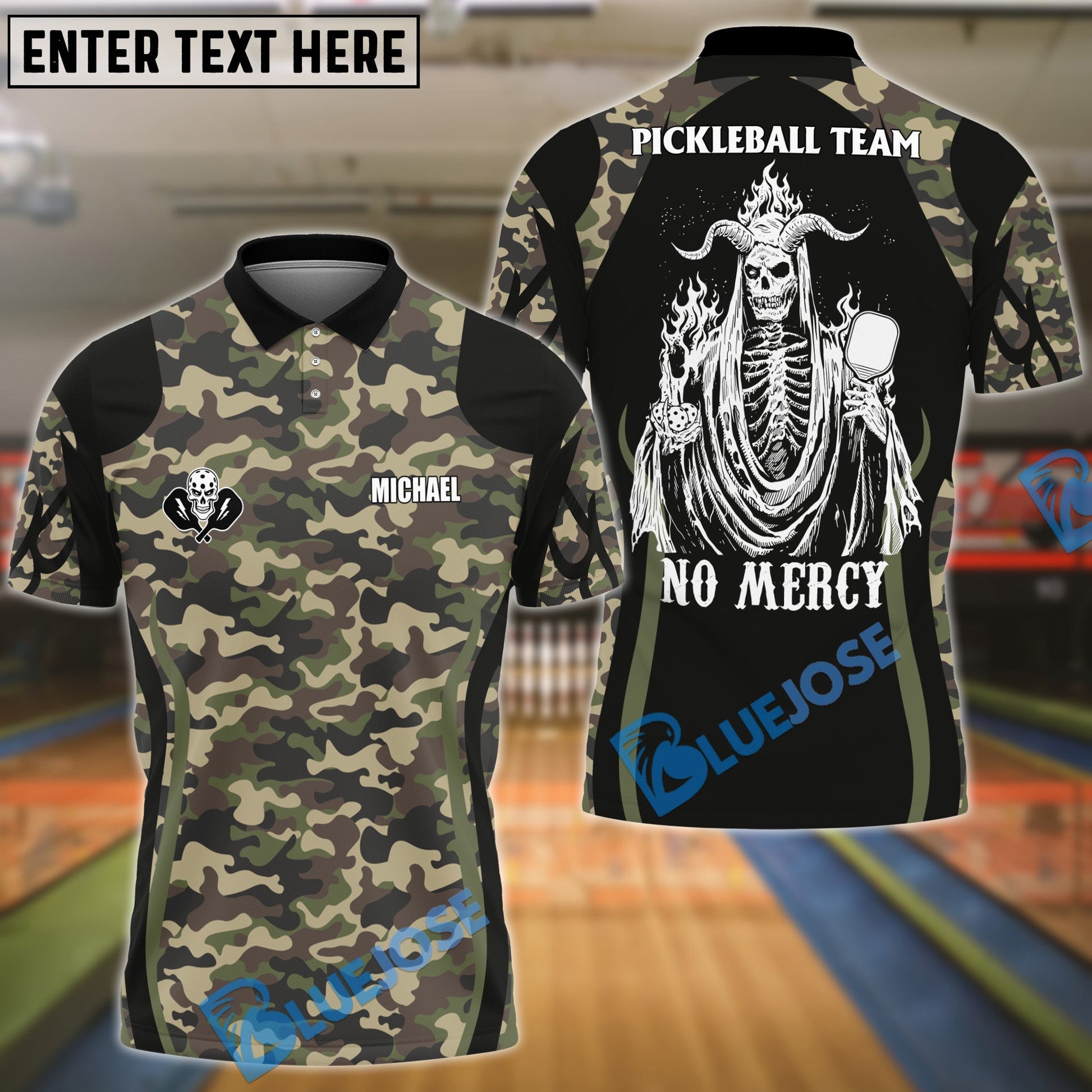BlueJose Personalized Name, Team Name Camo Skull Pickleball 3D Shirt