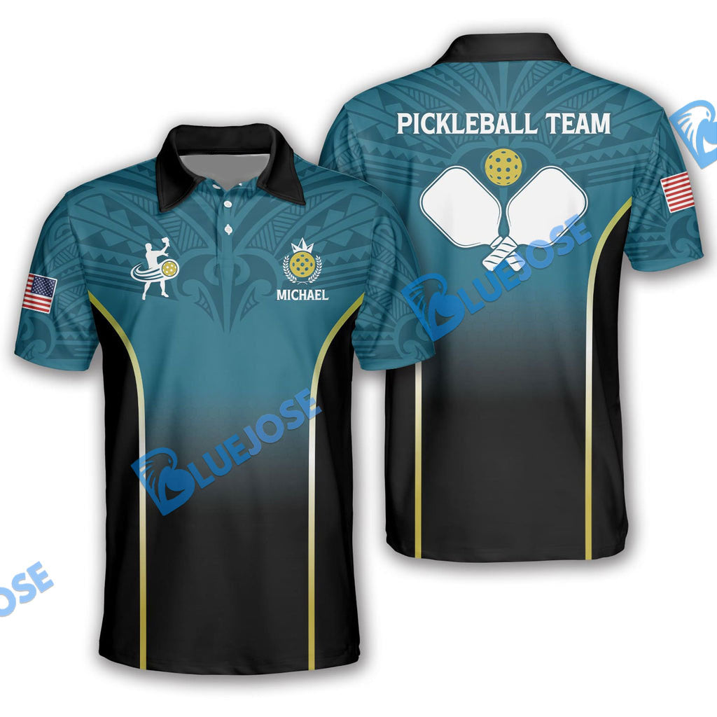 BlueJose Personalized Name, Team Name Green Tribal Style Pickleball 3D Shirt