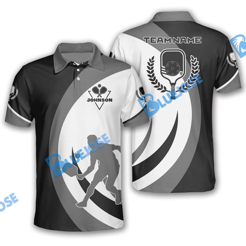 BlueJose Personalized Name, Team Name Silhouette Black Grey Emblem Pickleball 3D Shirt