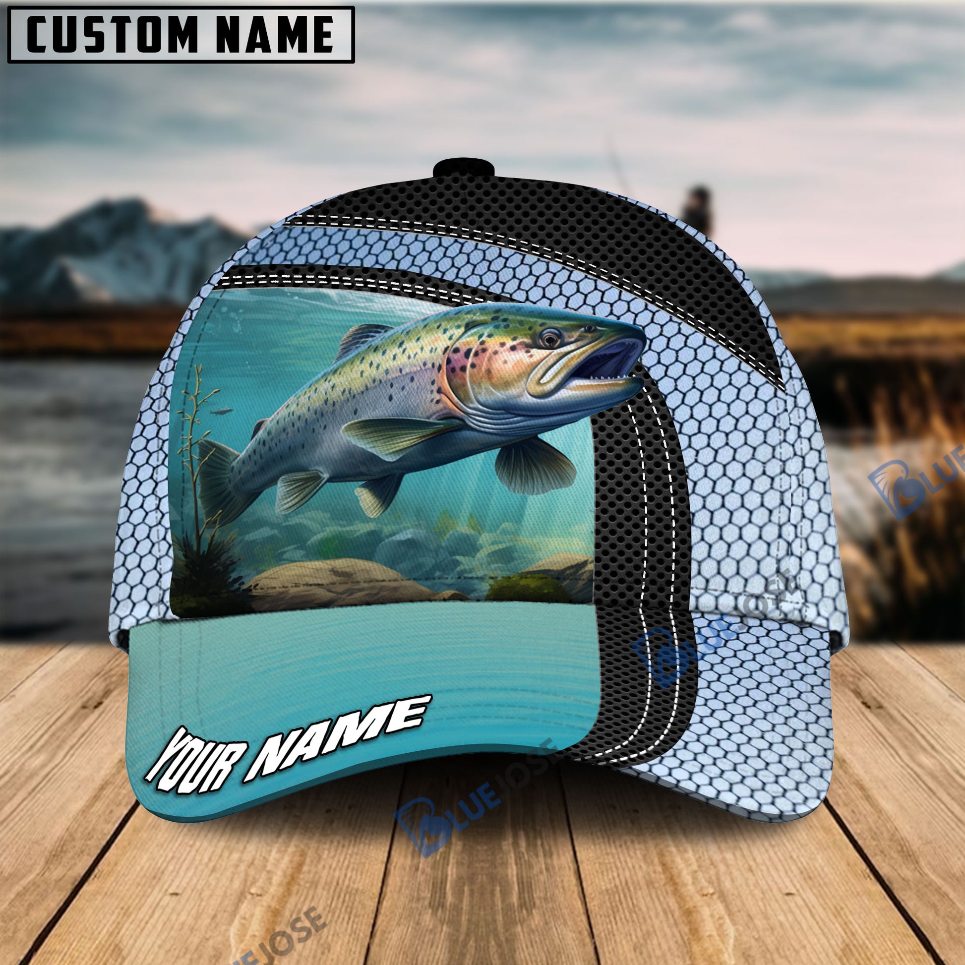 BlueJose Personalized Salmon Fishing Net Pattern Blue Cap