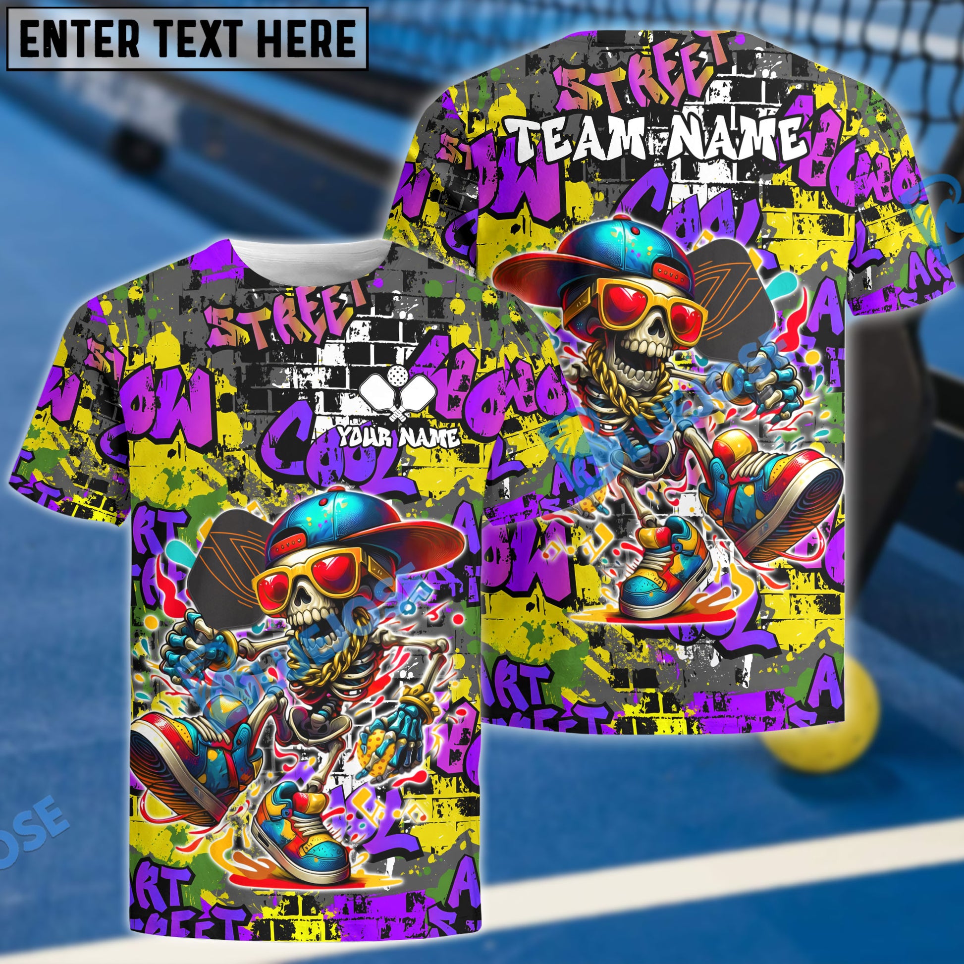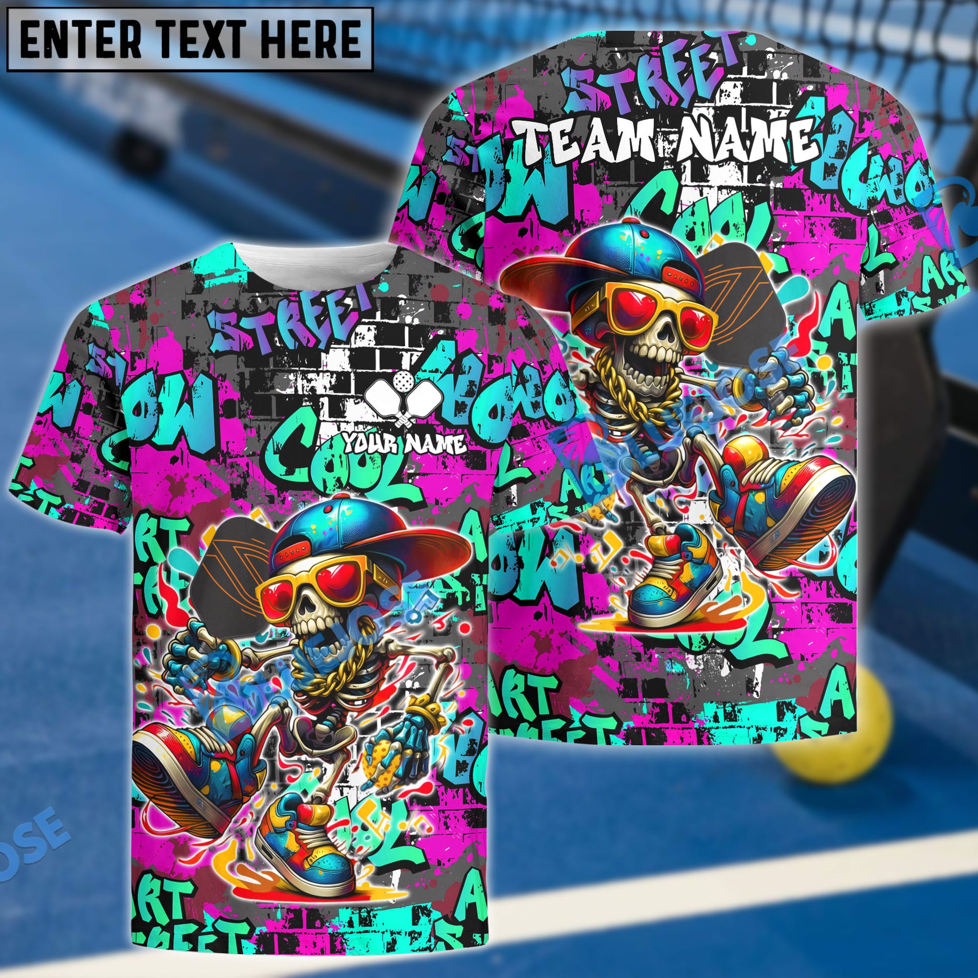 BlueJose Personalized Street Graffiti Skull Pickleball Name & Team Name 3D Shirts (4 Colors)