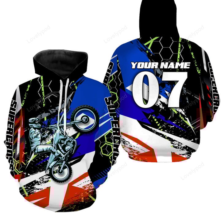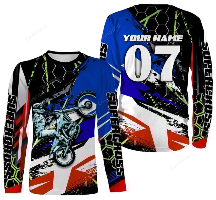 BlueJose Personalized Supercross Riding Jersey, Custom Number & Name Motorcycle Off-Road Dirt Bike Racing