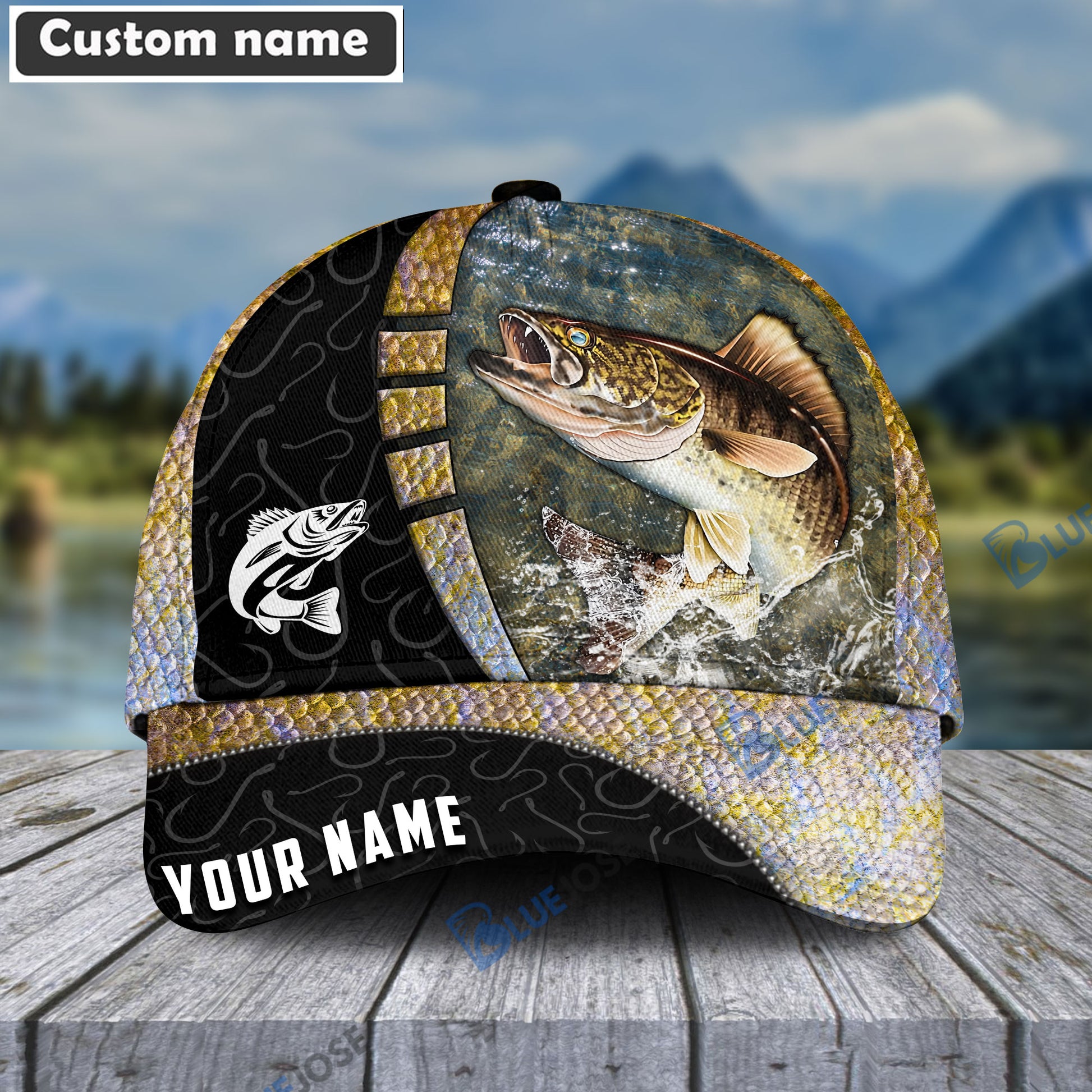 BlueJose Personalized Walleye Fishing Hook Camo Classic Cap