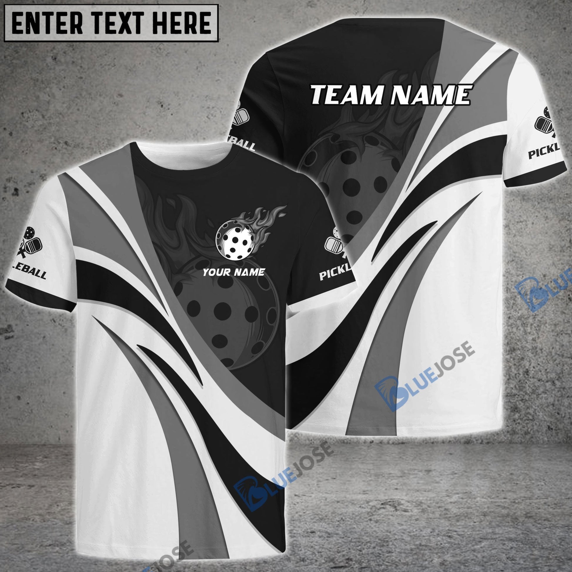 BlueJose Pickleball Fire 2 Personalized Name, Team Name Unisex Shirt