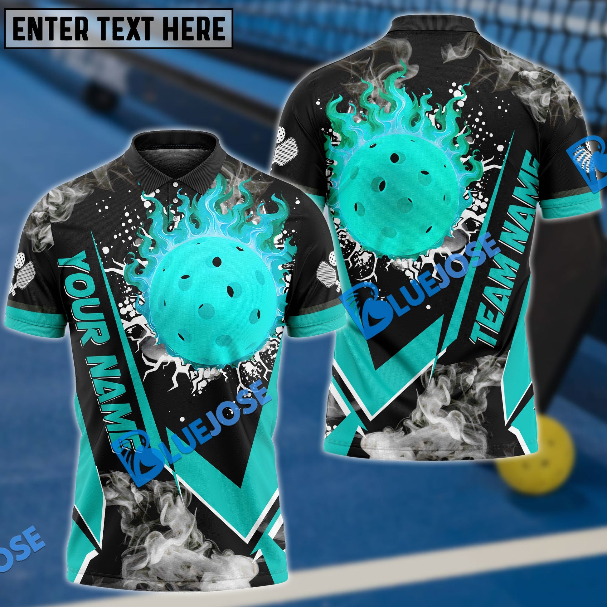 BlueJose Pickleball Flame Declare War Personalized Name, Team Name Unisex Shirt (4 Colors)