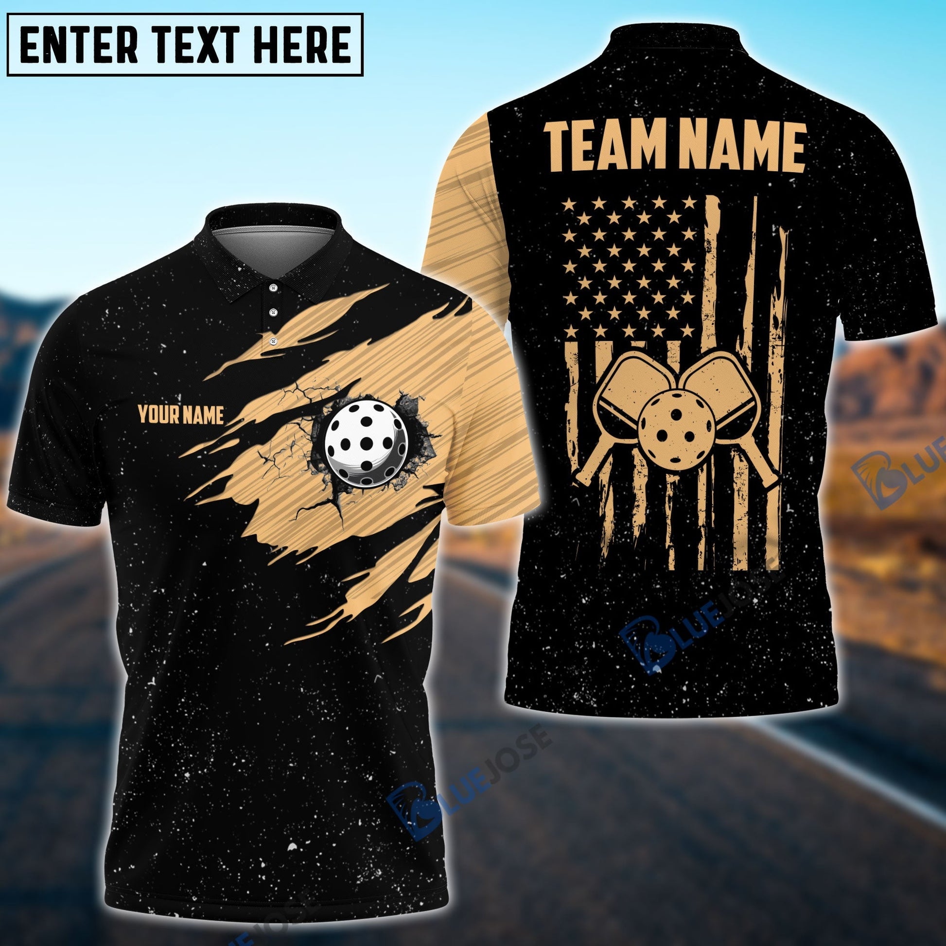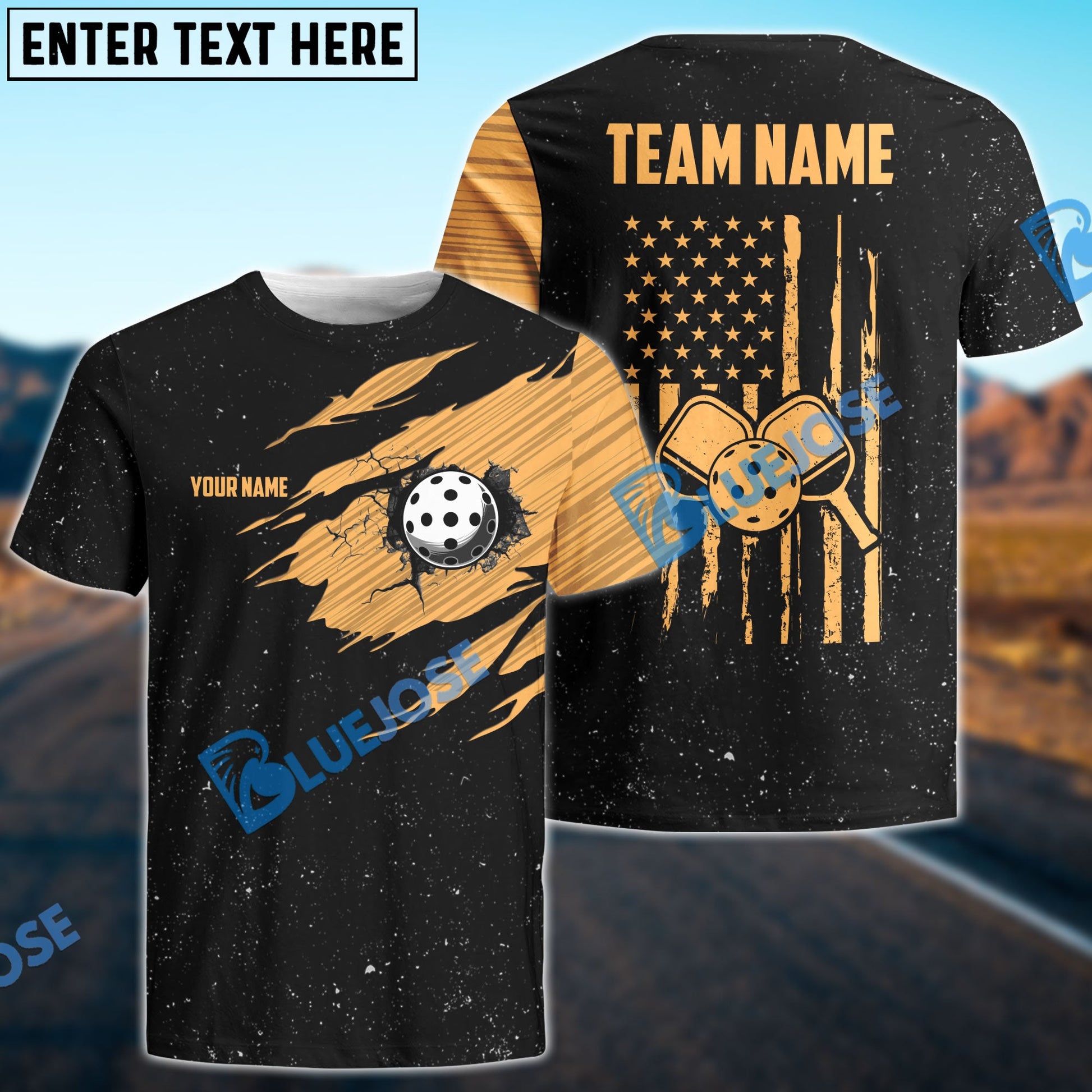 BlueJose Pickleball Golden Broken Personalized Name, Team Name Unisex Shirt