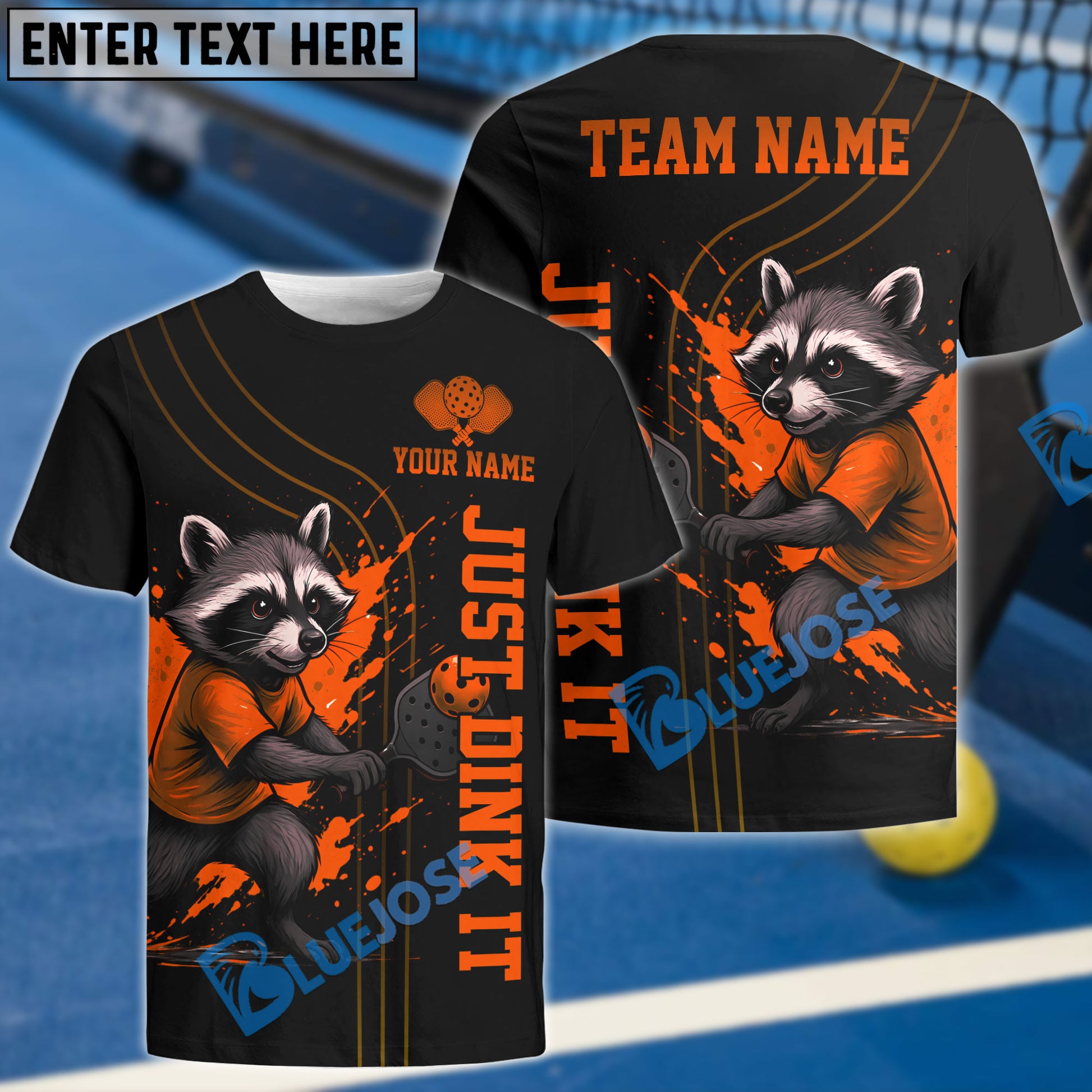 BlueJose Pickleball Just Dink It Raccoon Halloween Customized Name & Team Name 3D Shirts