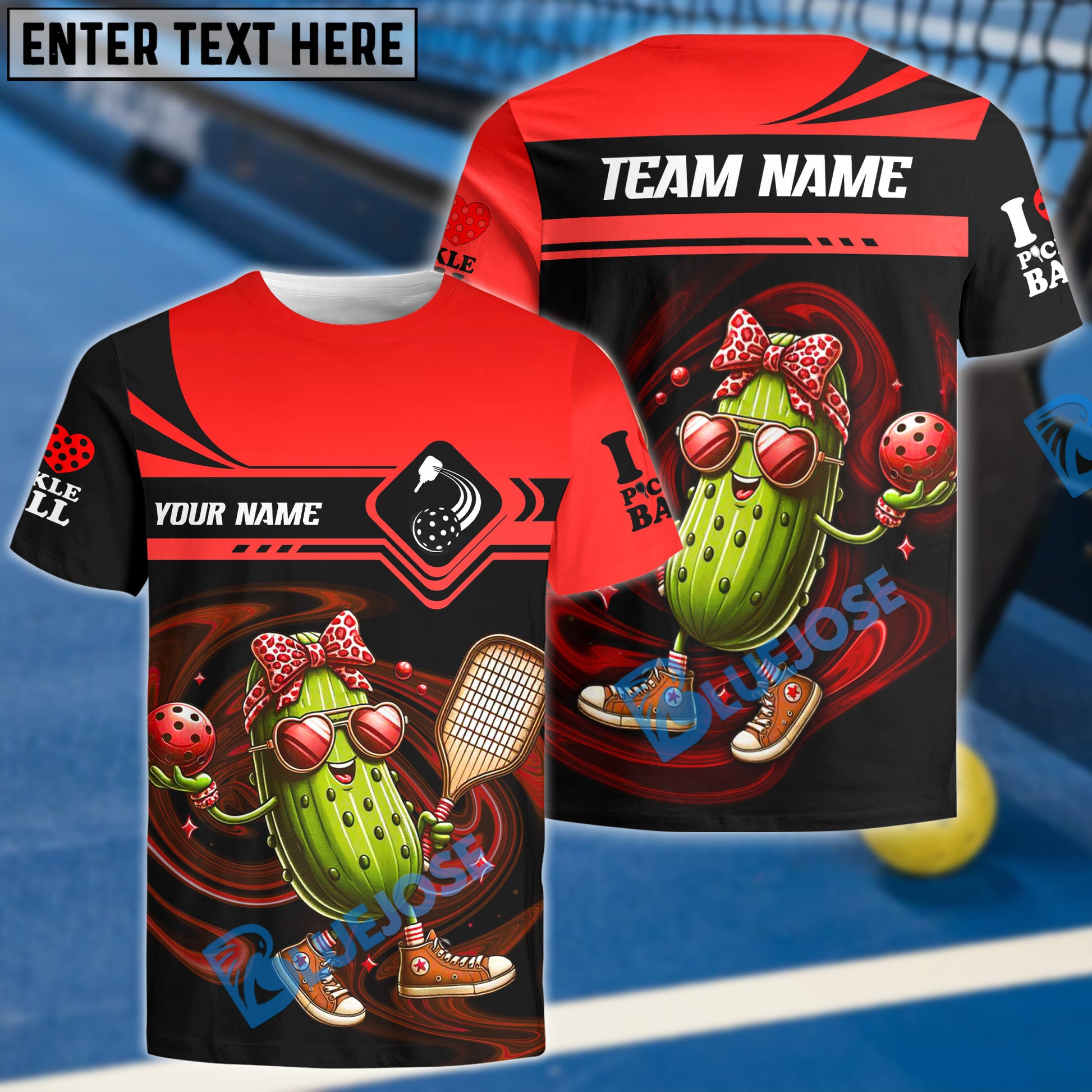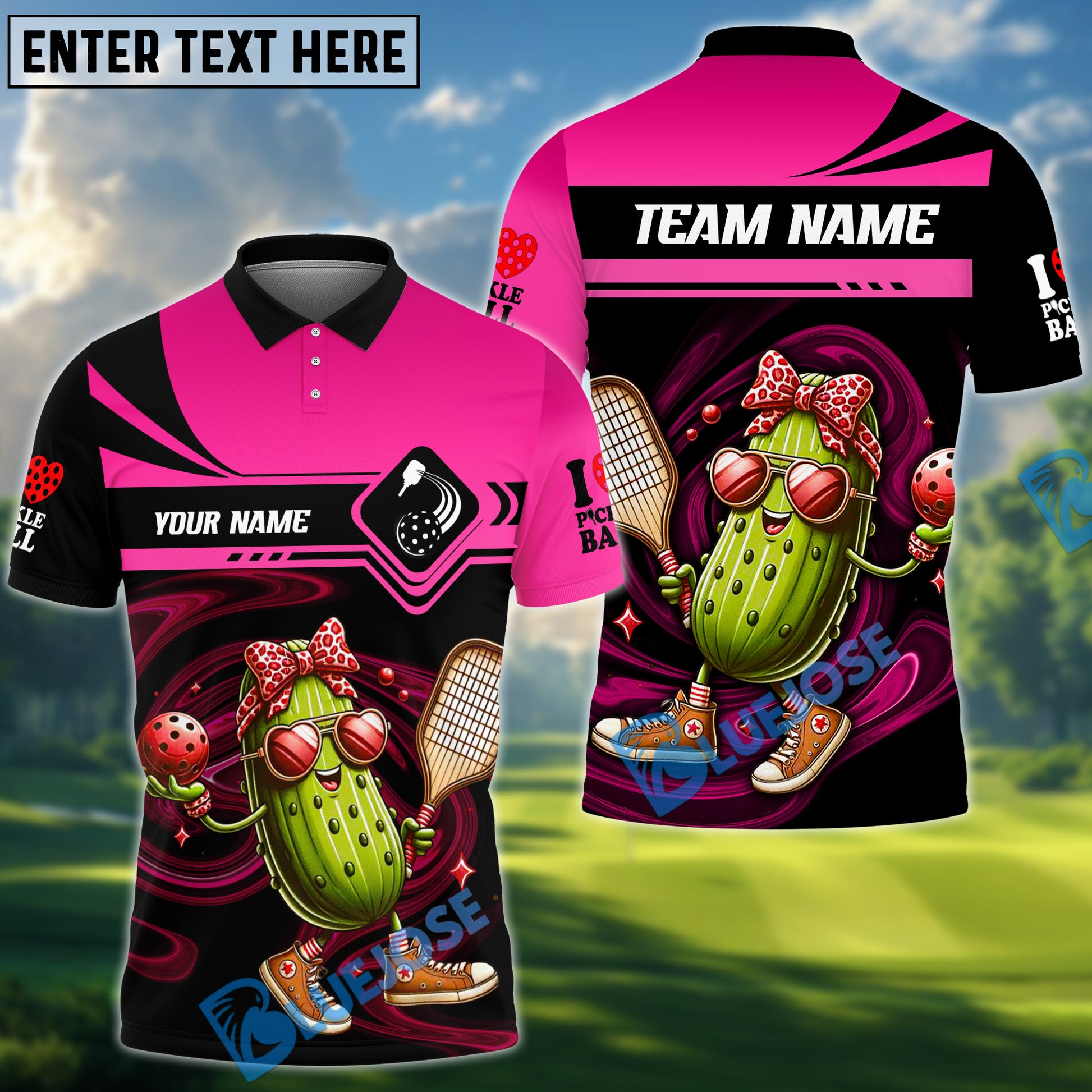 BlueJose Pink Love Pickleball Funny Customized Name 3D Shirt (4 Colors)