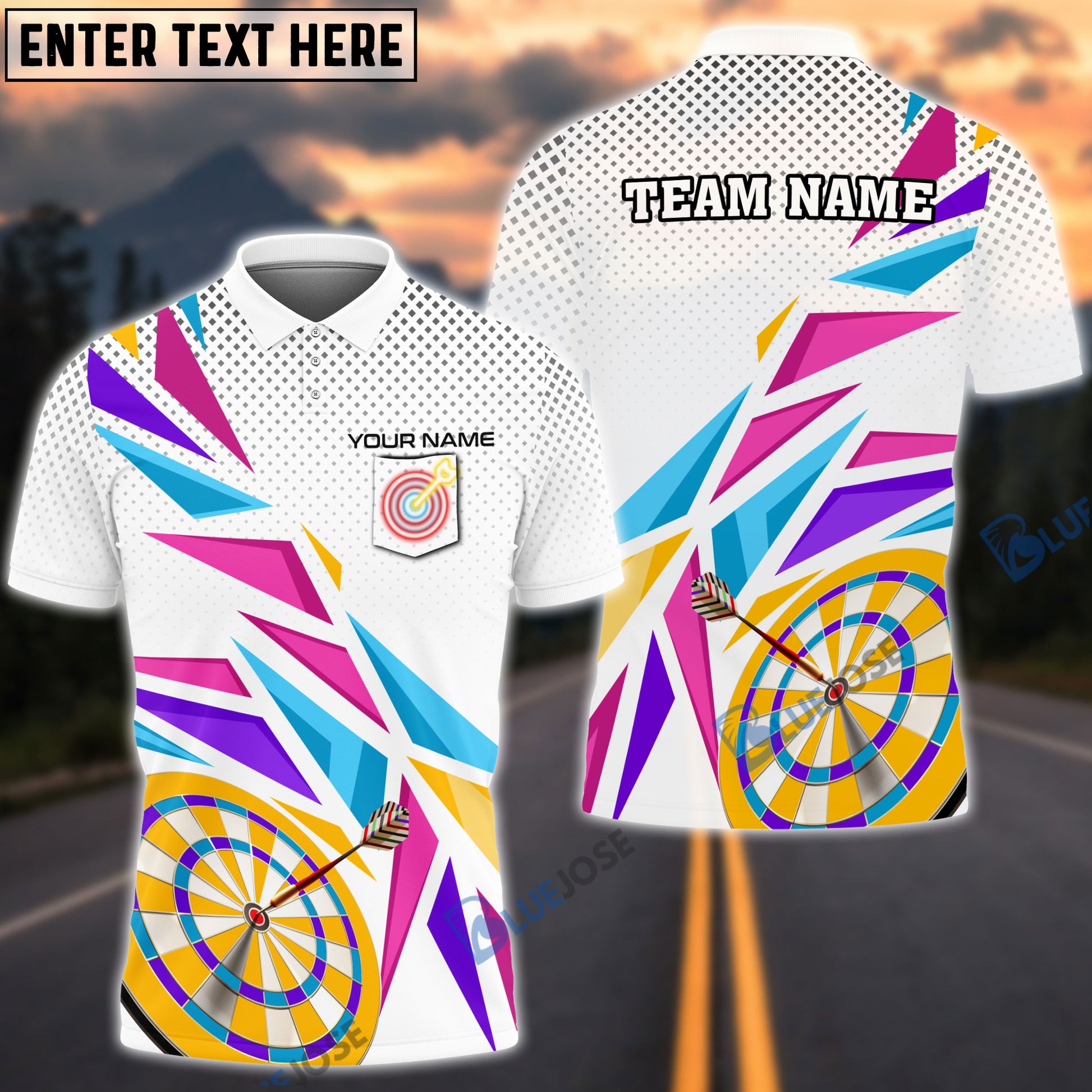 BlueJose Pink Purple Darts Board Personalized Name, Team Name 3D Pocket Polo