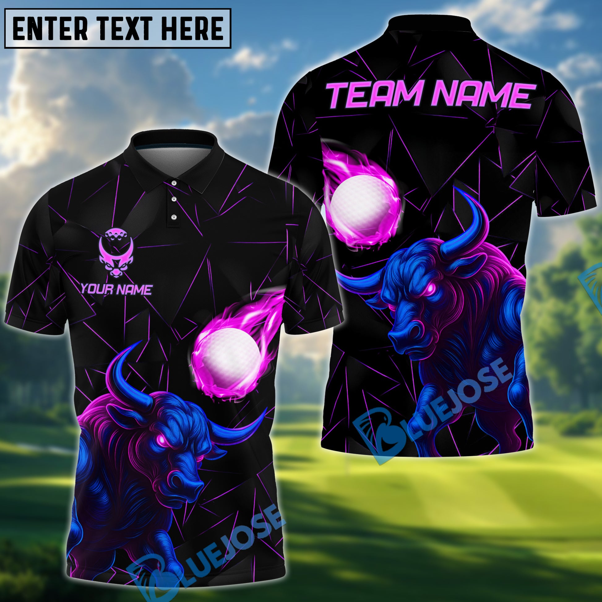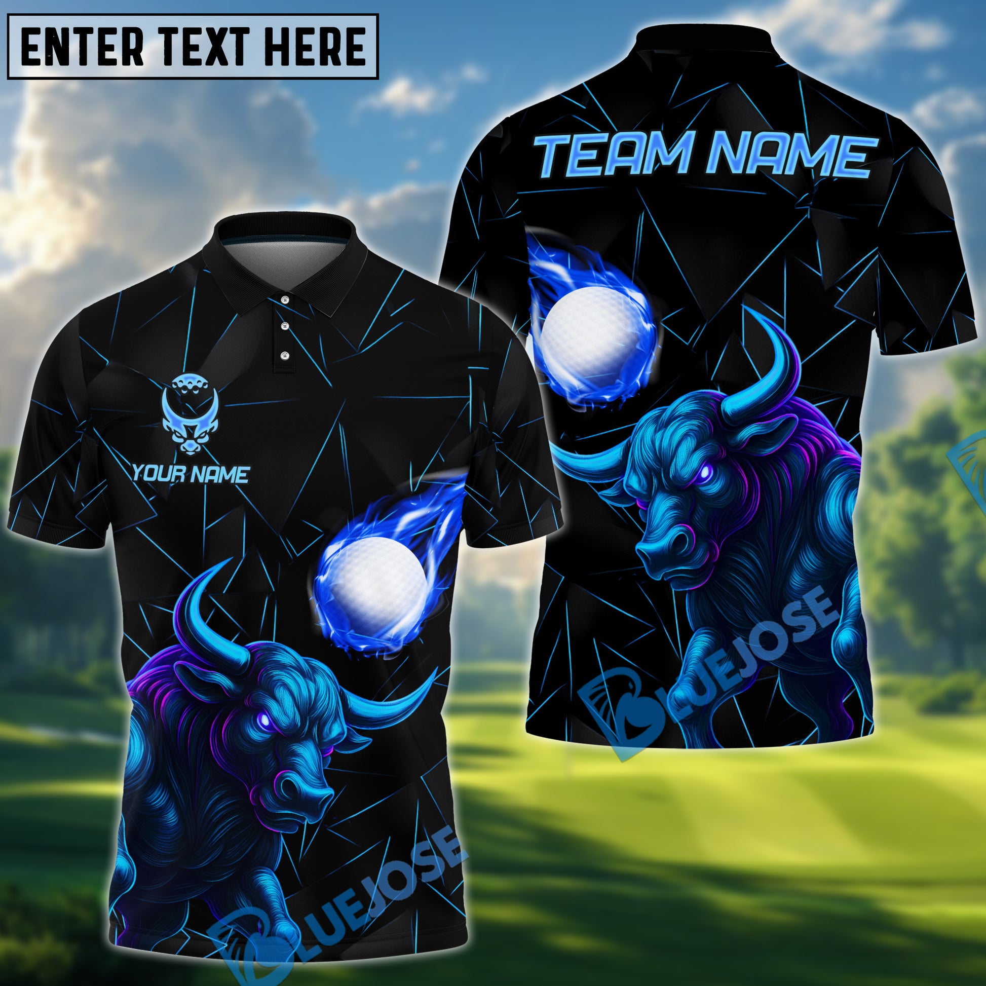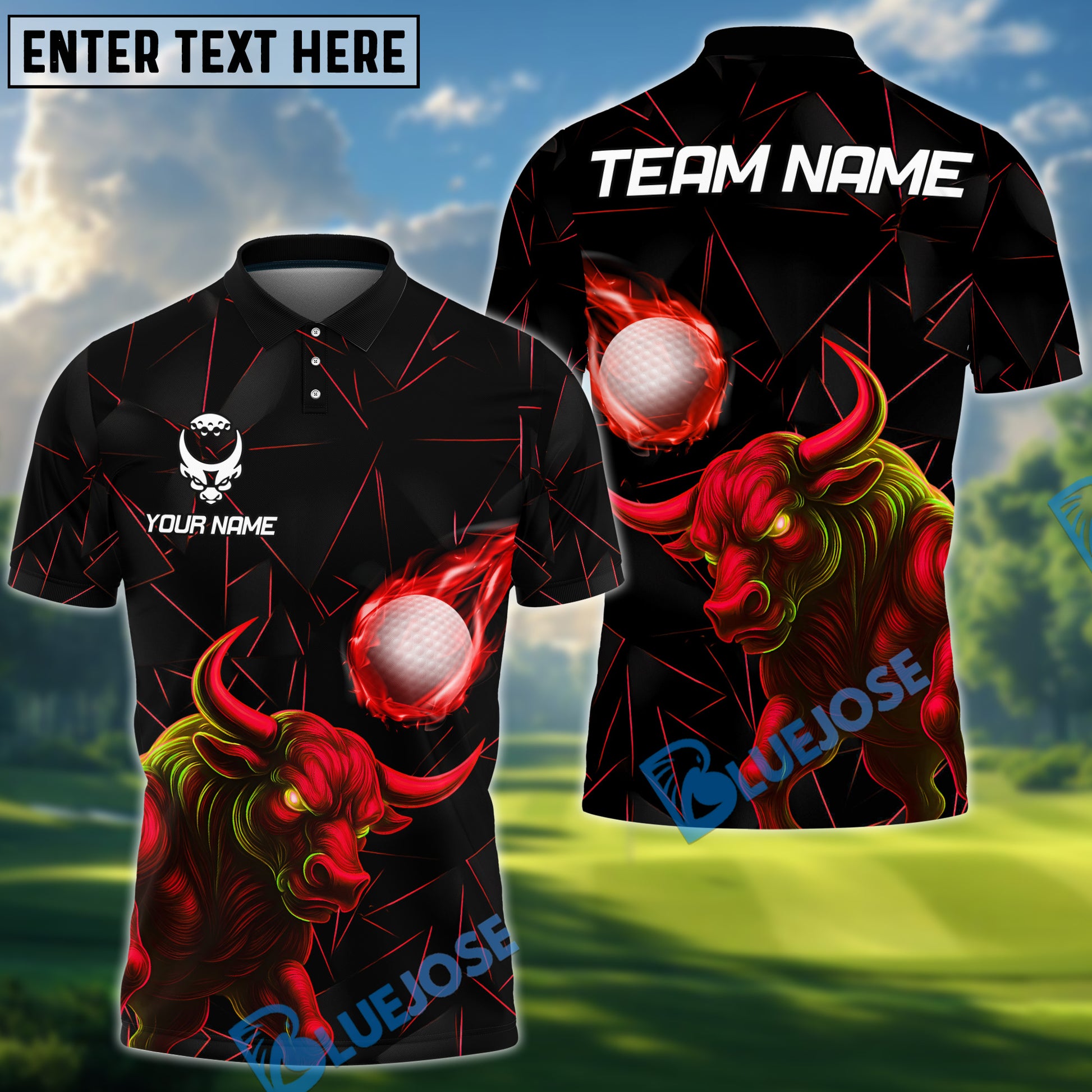 BlueJose Power Strike Bull Golf Polo Shirt, Customized Name & Team Name 3D Shirts (4 Colors)