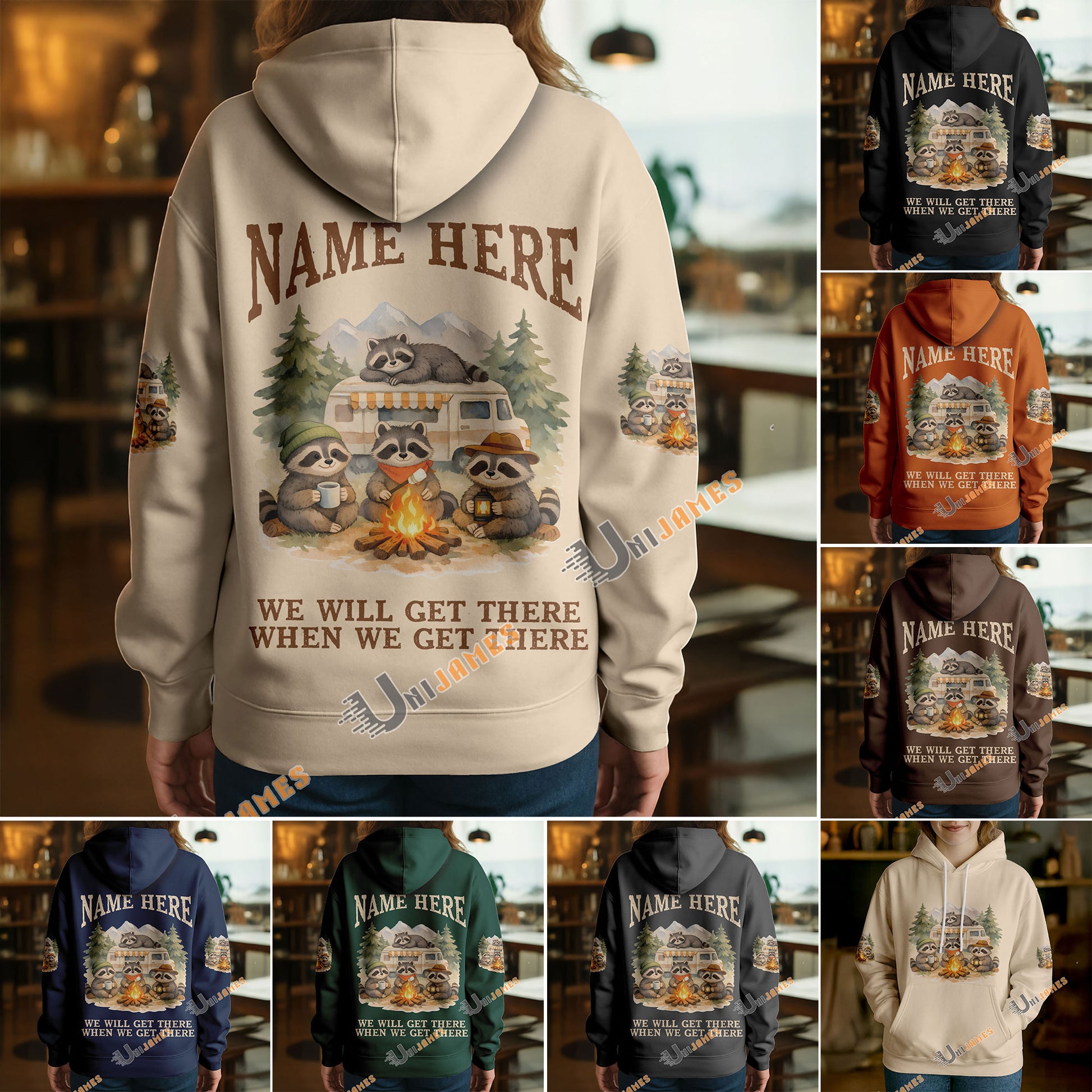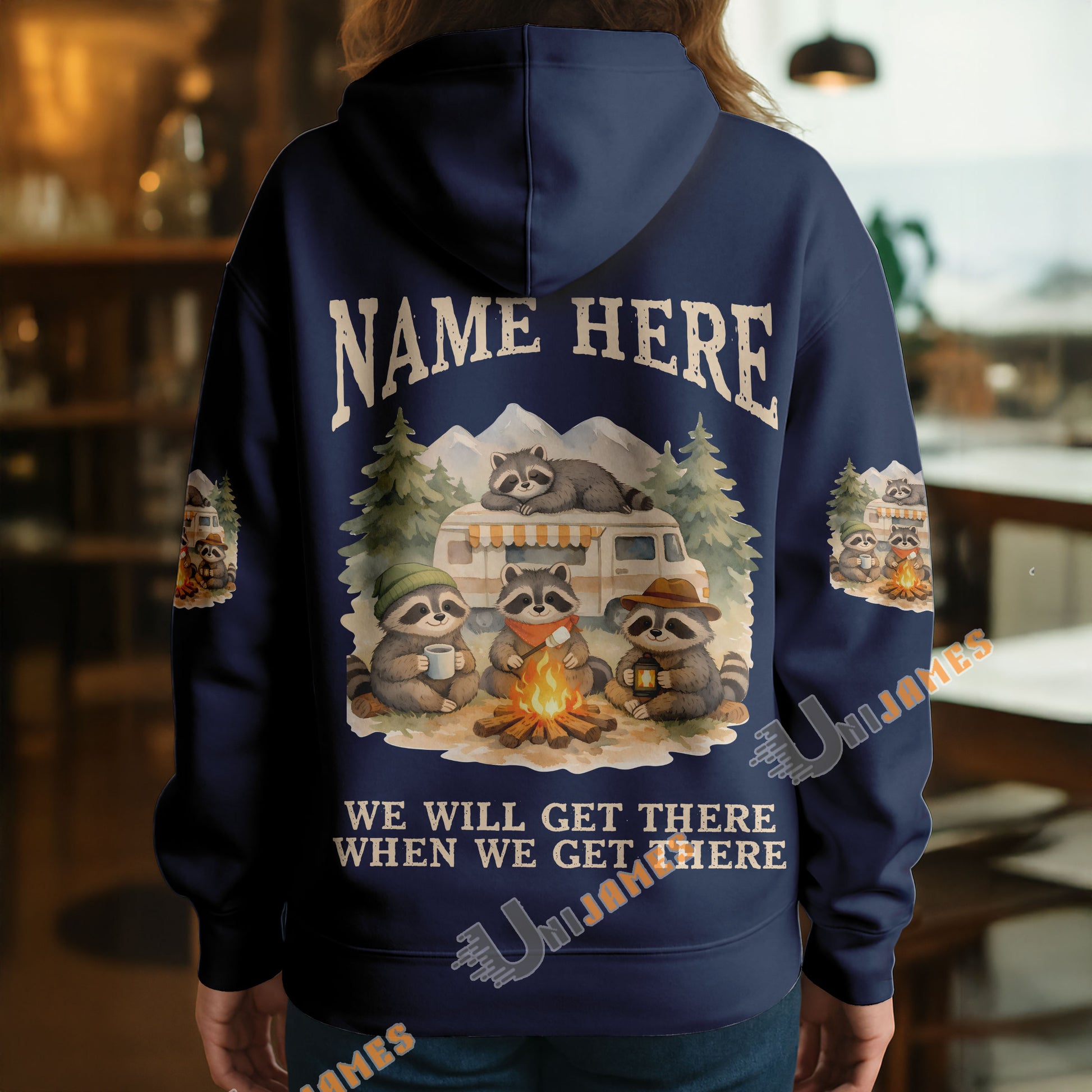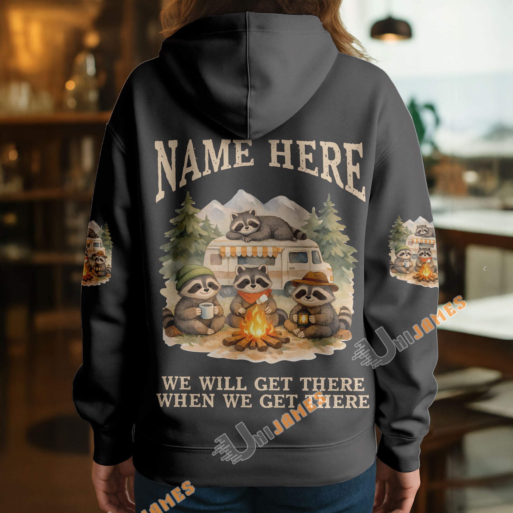 BlueJose Racoon Camping We Will Get There When We Get There Personalized Name Shirts