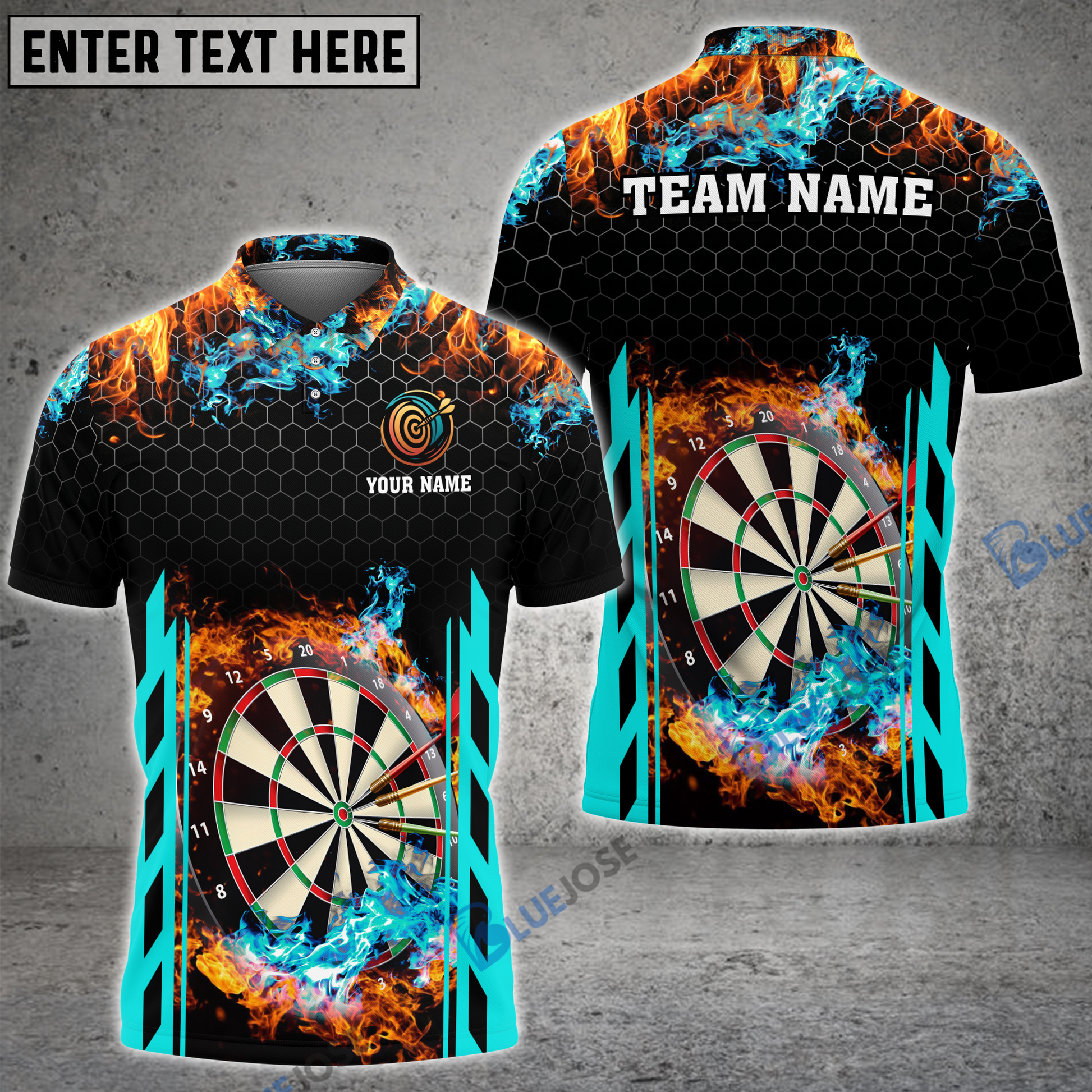 BlueJose Red and Blur Fire Dart Board Personalized Name, Team Name 3D Shirt (6 Colors)