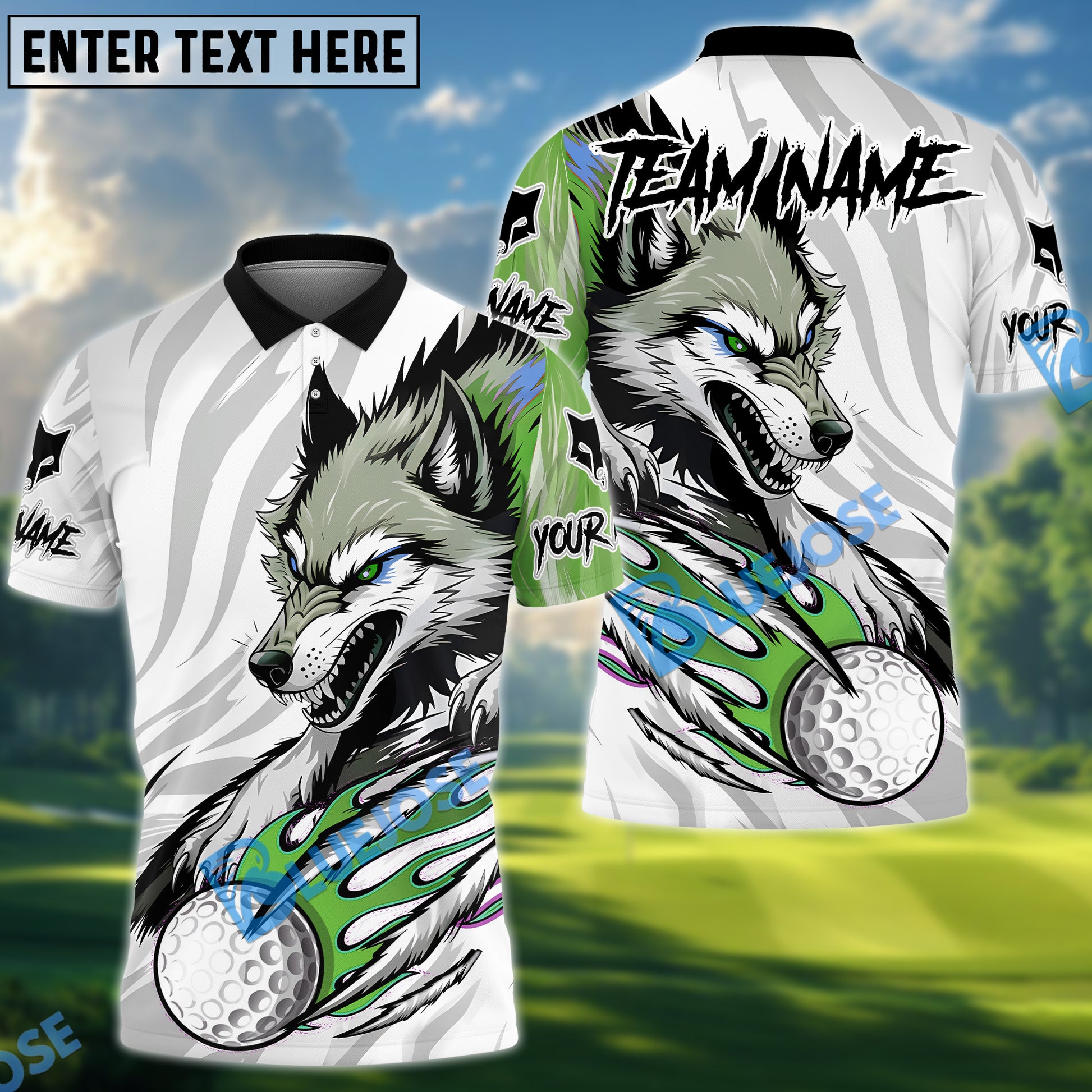 BlueJose Savage Wolf Golf Polo Customized Name, Team Name 3D Shirts (4 Colors)
