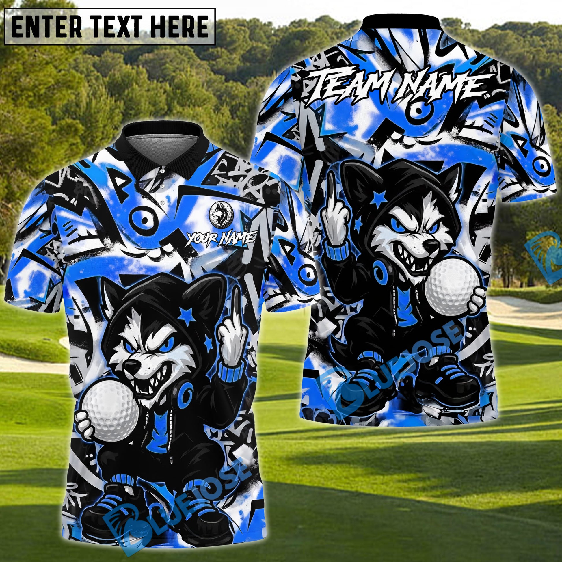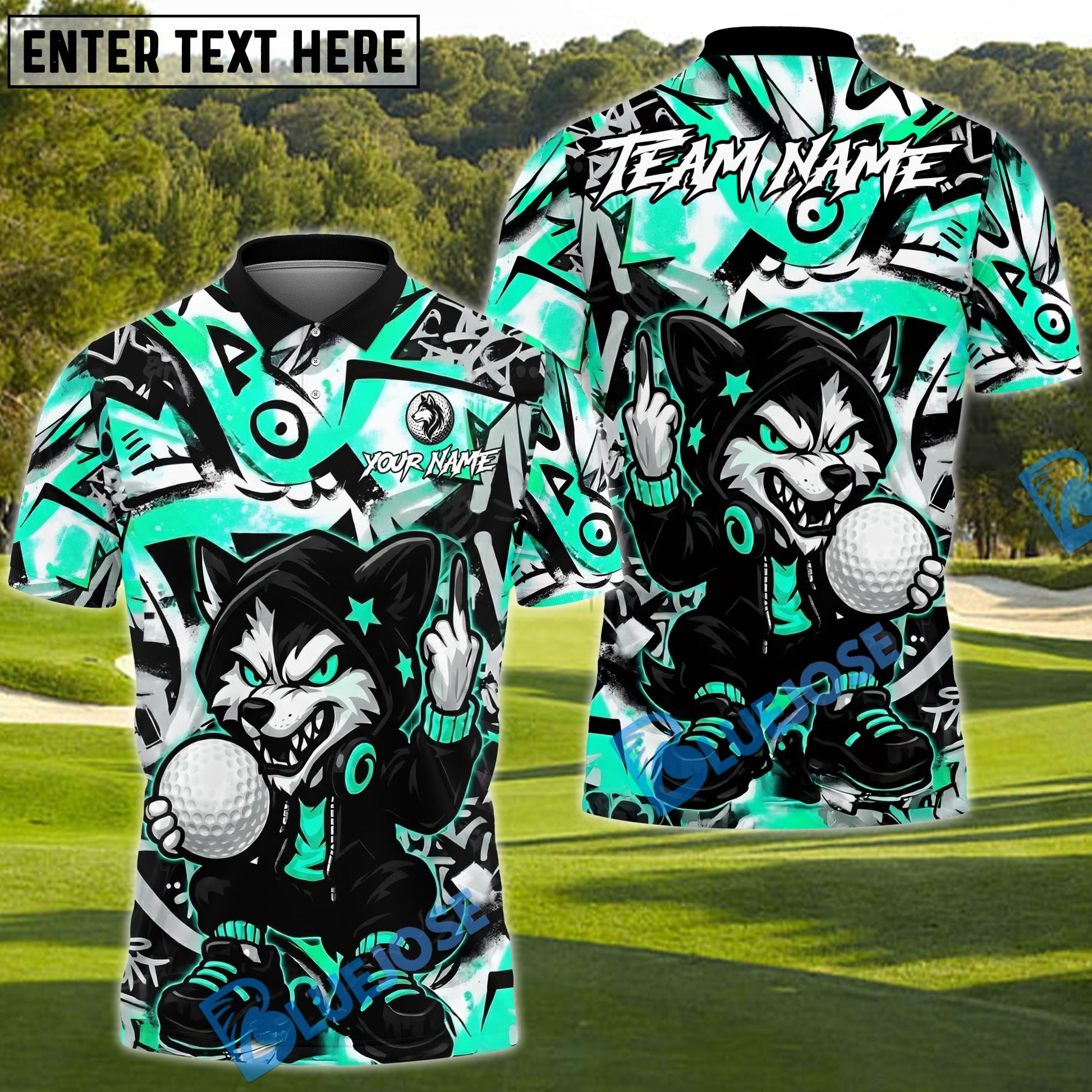 BlueJose Savage Wolf Golfer Polo Customized Name, Team Name 3D Shirts (4 Colors)