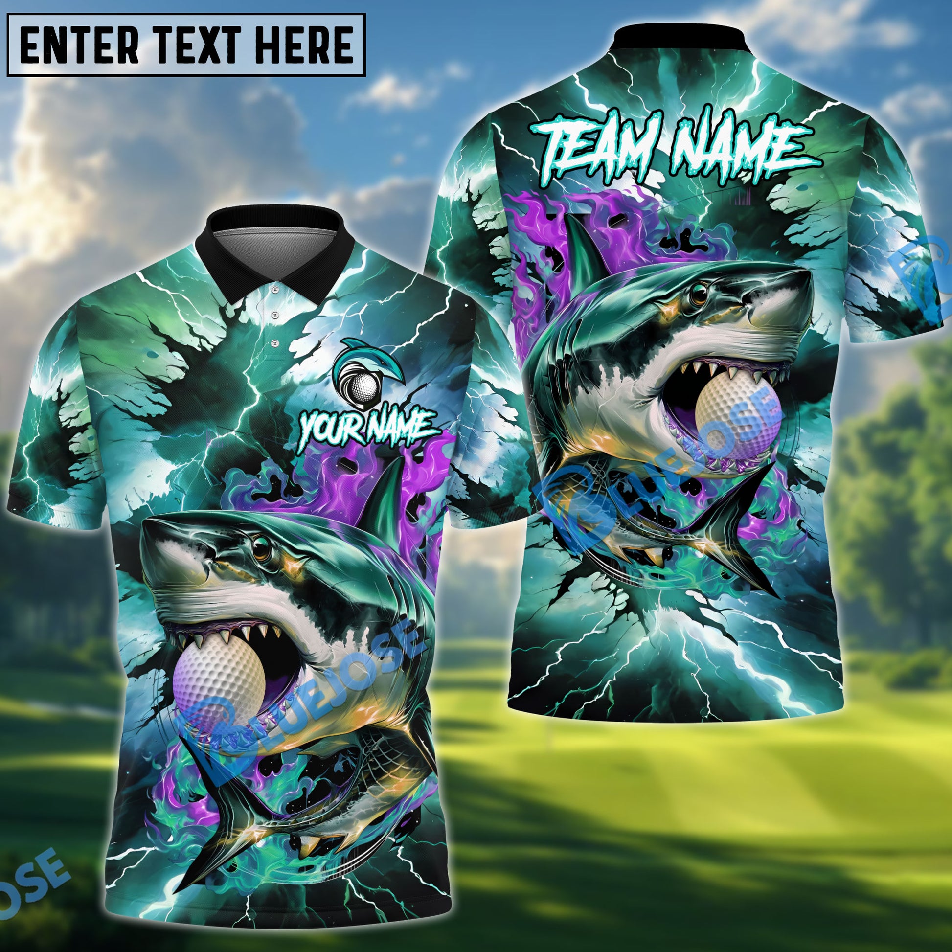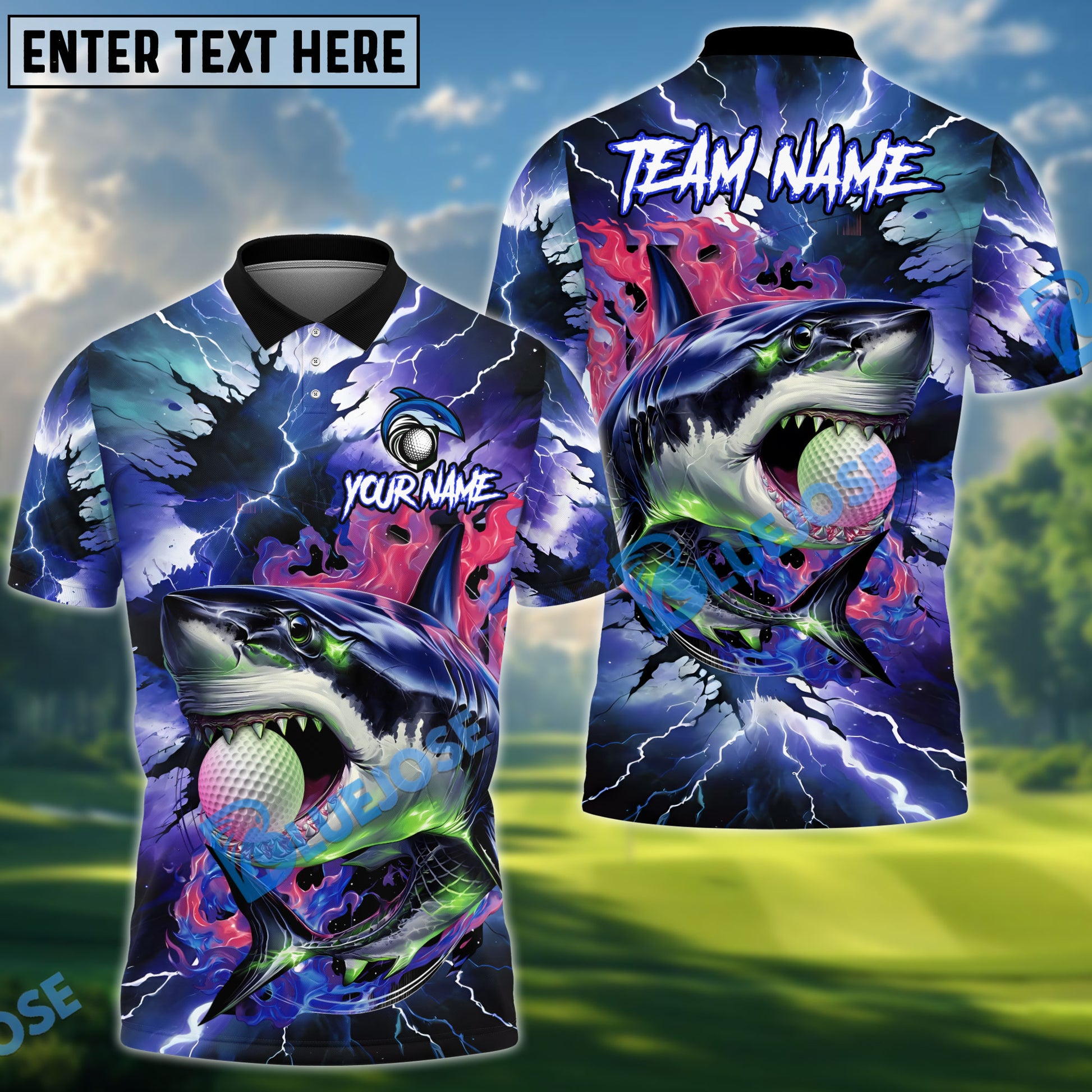 BlueJose Shark Strike Golf Polo Shirt, Customized Name & Team Name 3D Shirts (4 Colors)