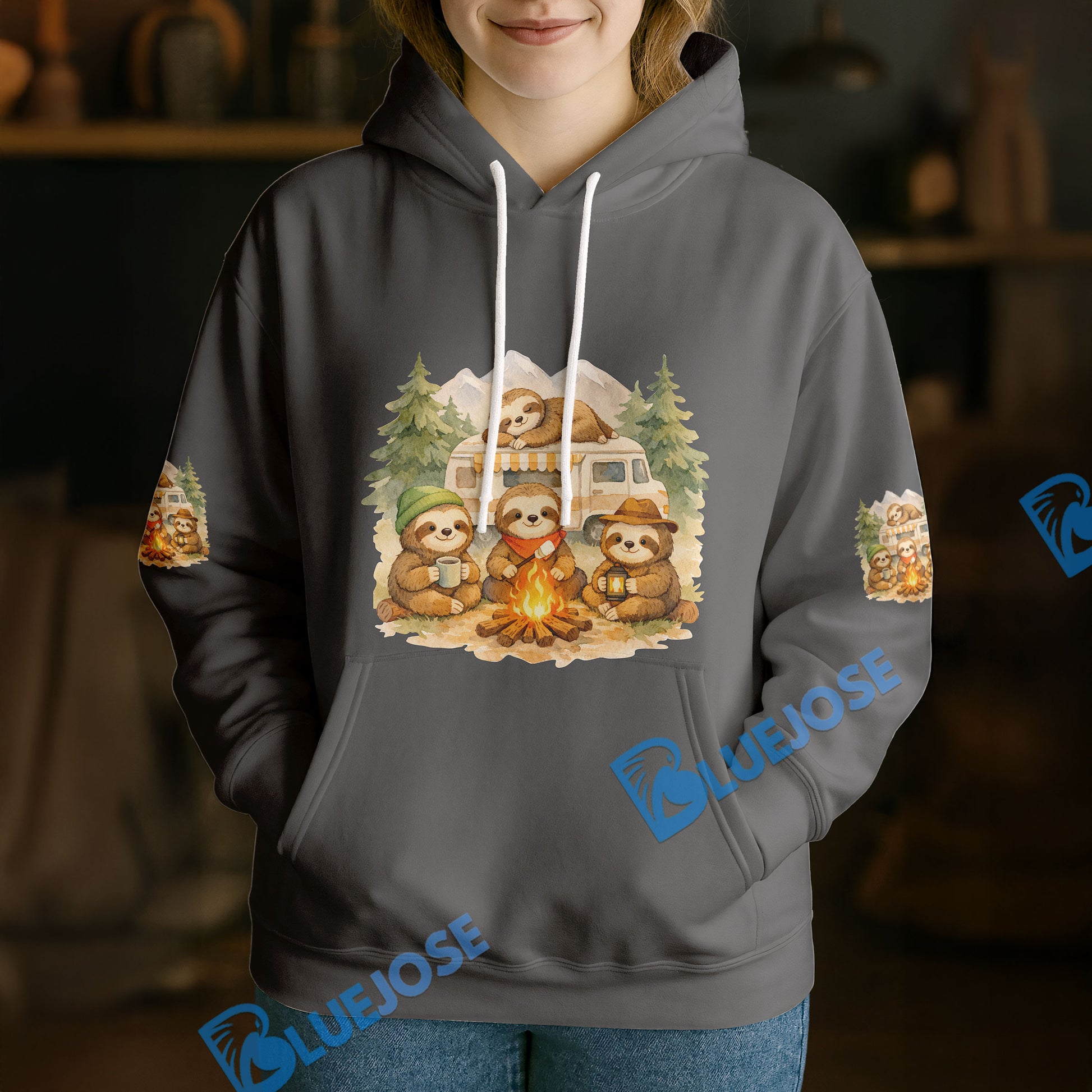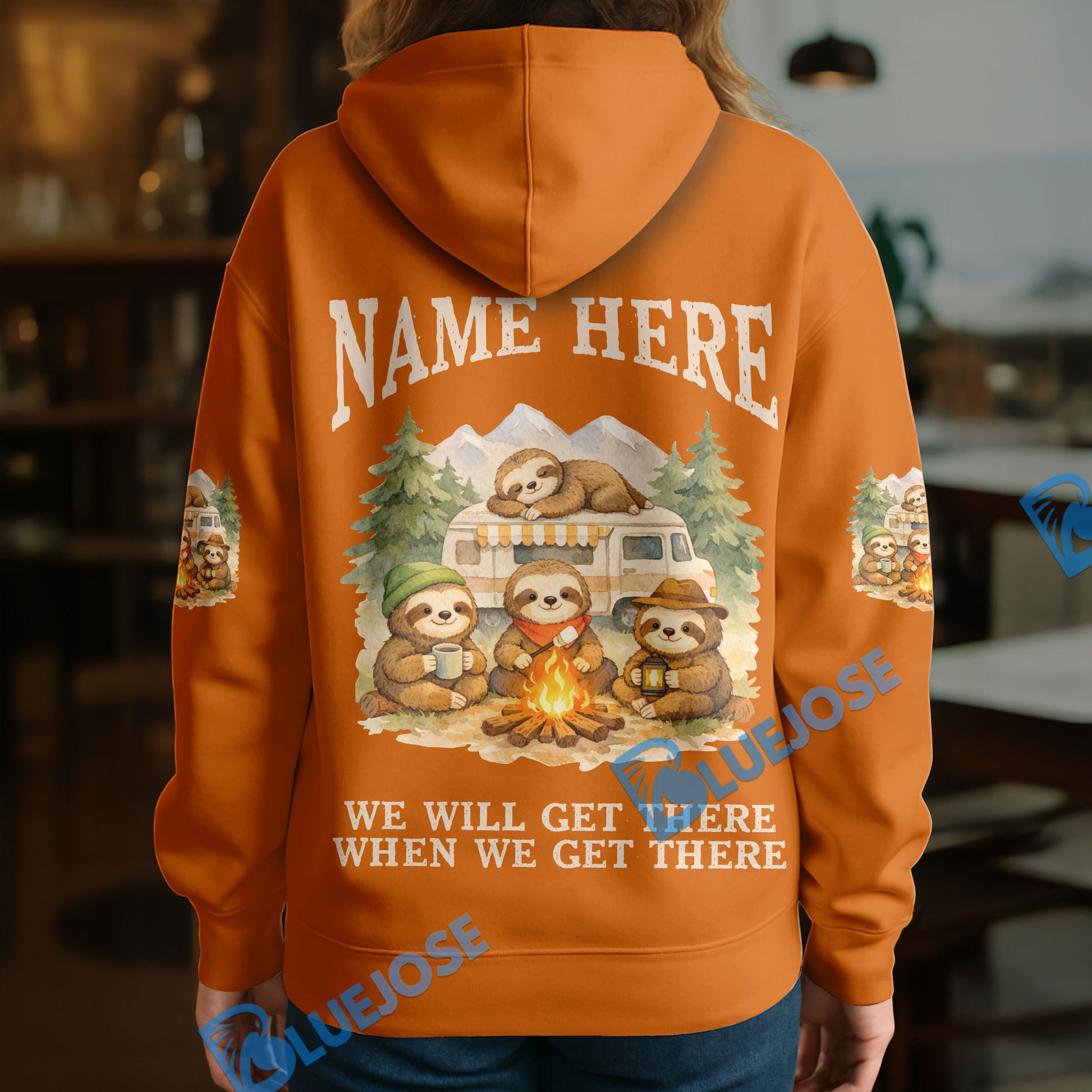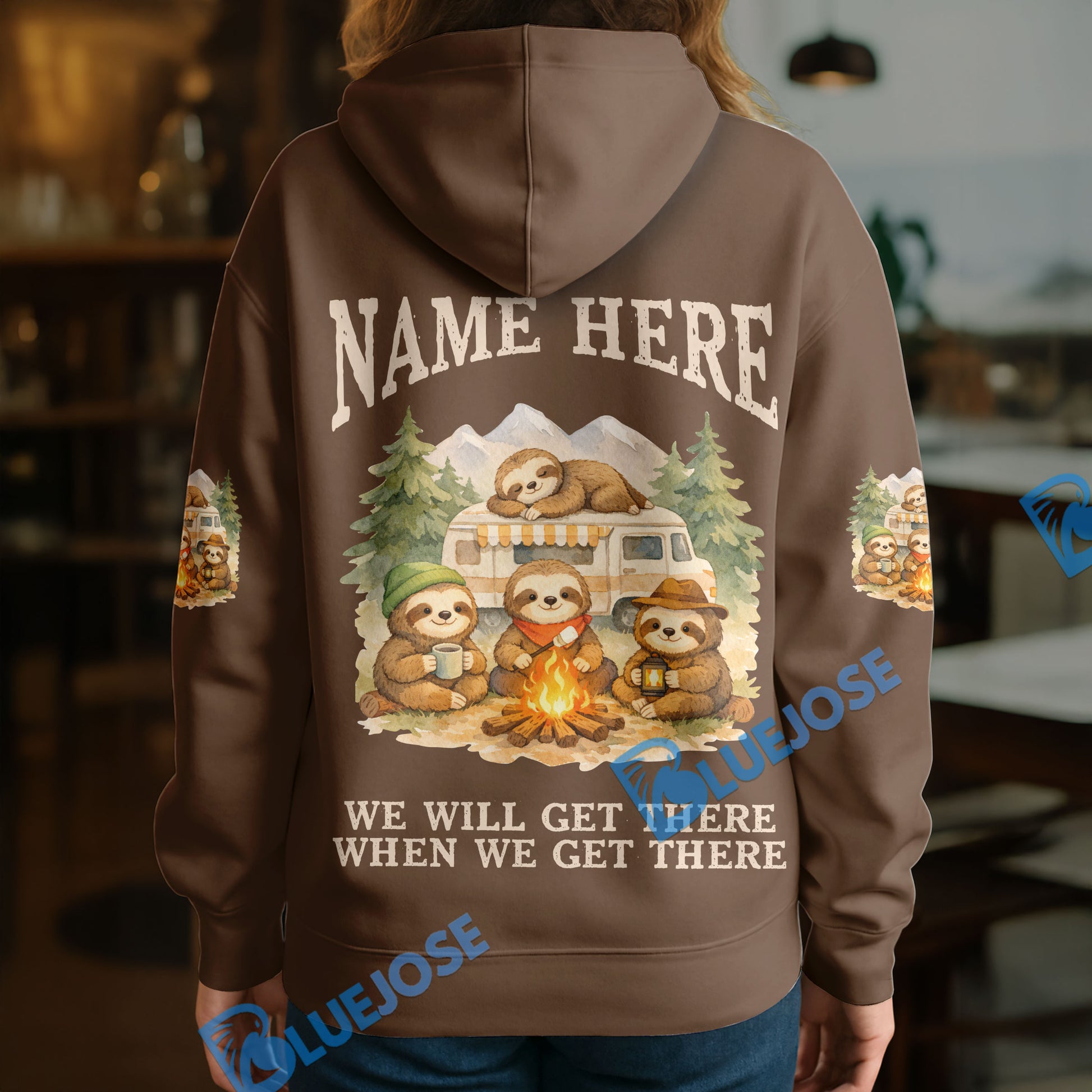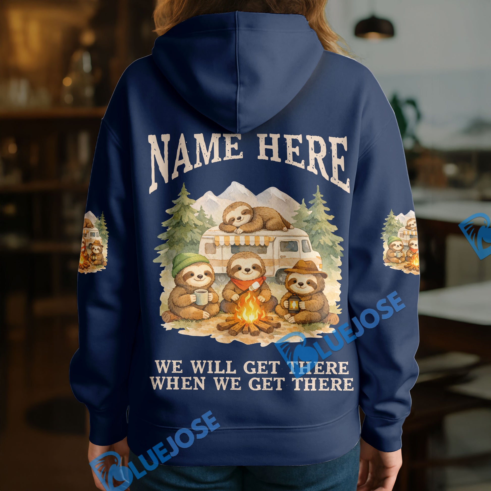 BlueJose Sloth Camping We Will Get There When We Get There Personalized Name Shirts