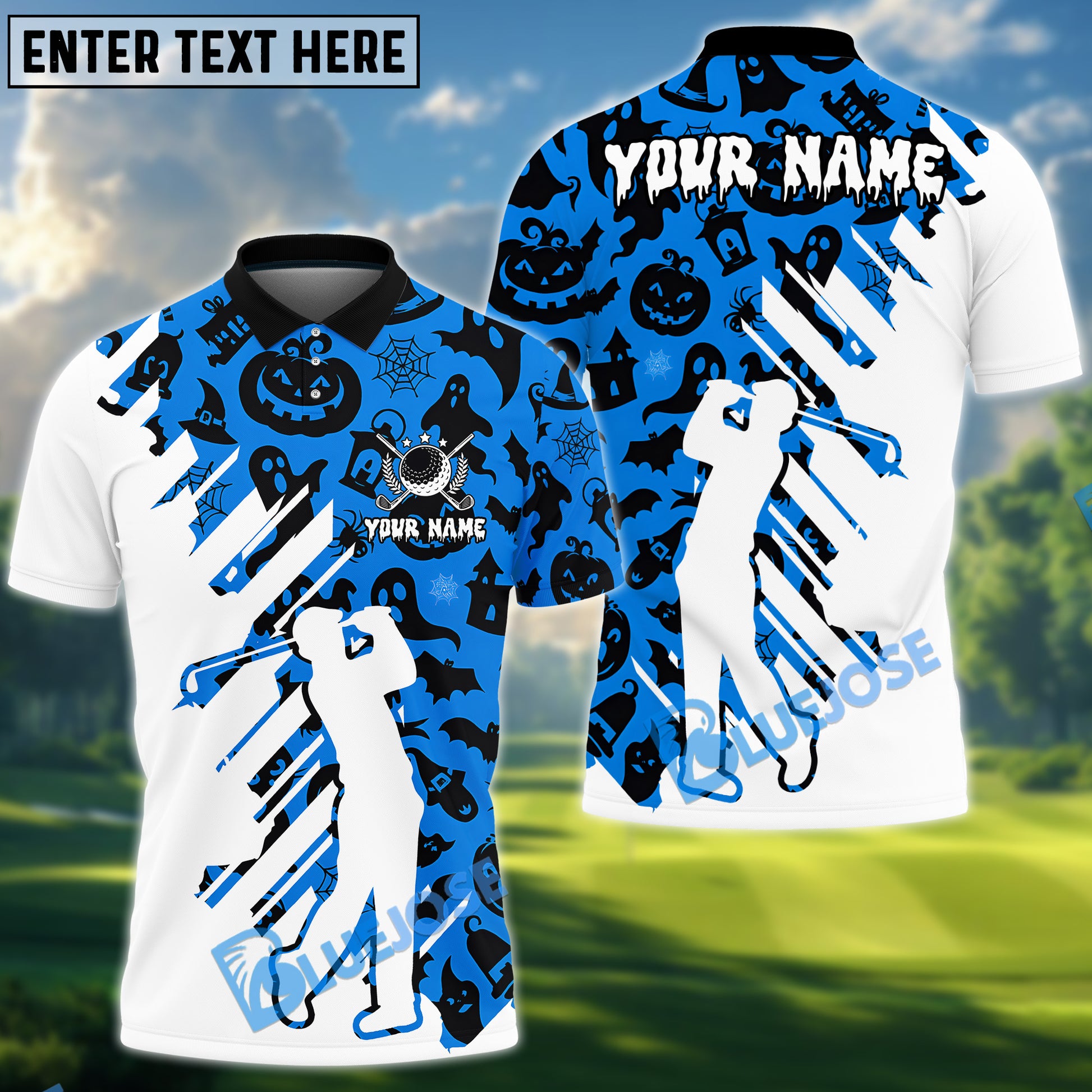 BlueJose Spooky Swing Golf Polo Shirt, Customized Name & Team Name 3D Shirts (4 Colors)
