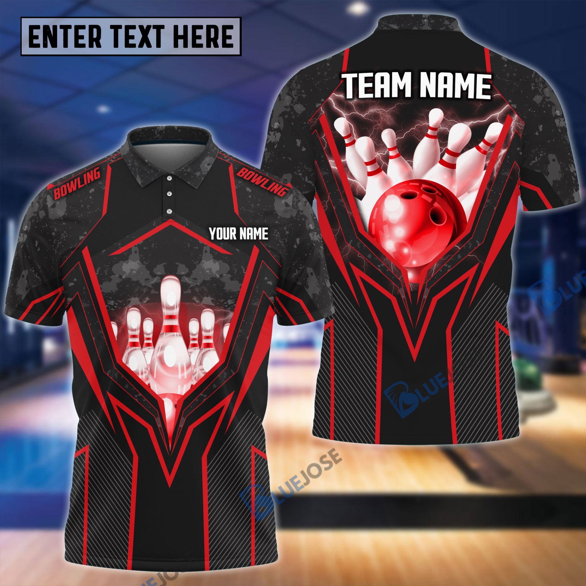 BlueJose Super Thunder Bowling And Pins Break Multicolor Customized Name 3D Shirt