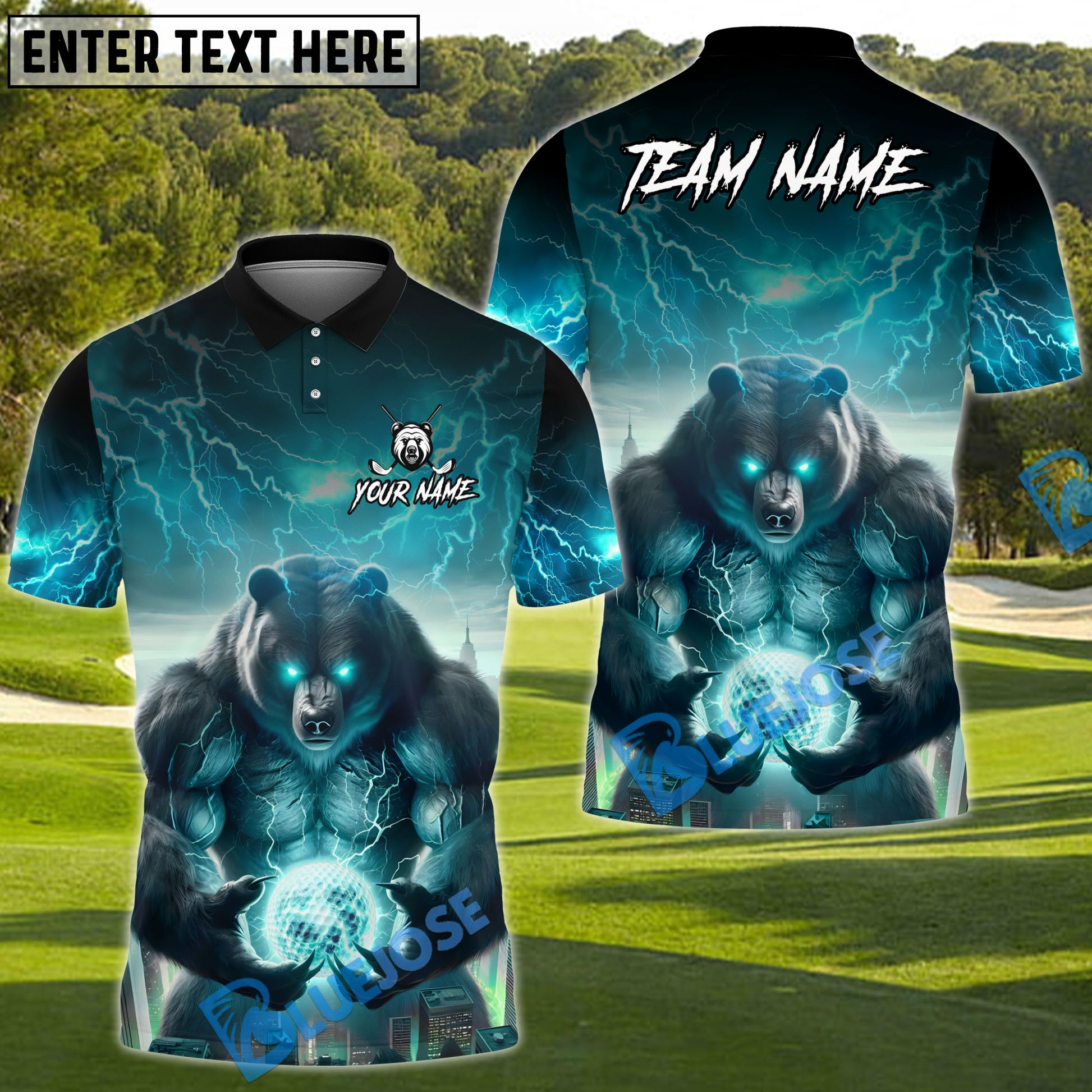 BlueJose Thunder Bear Golf Polo Funny Golf Polo Shirt, Customized Name & Team Name 3D Shirts (4 Colors)