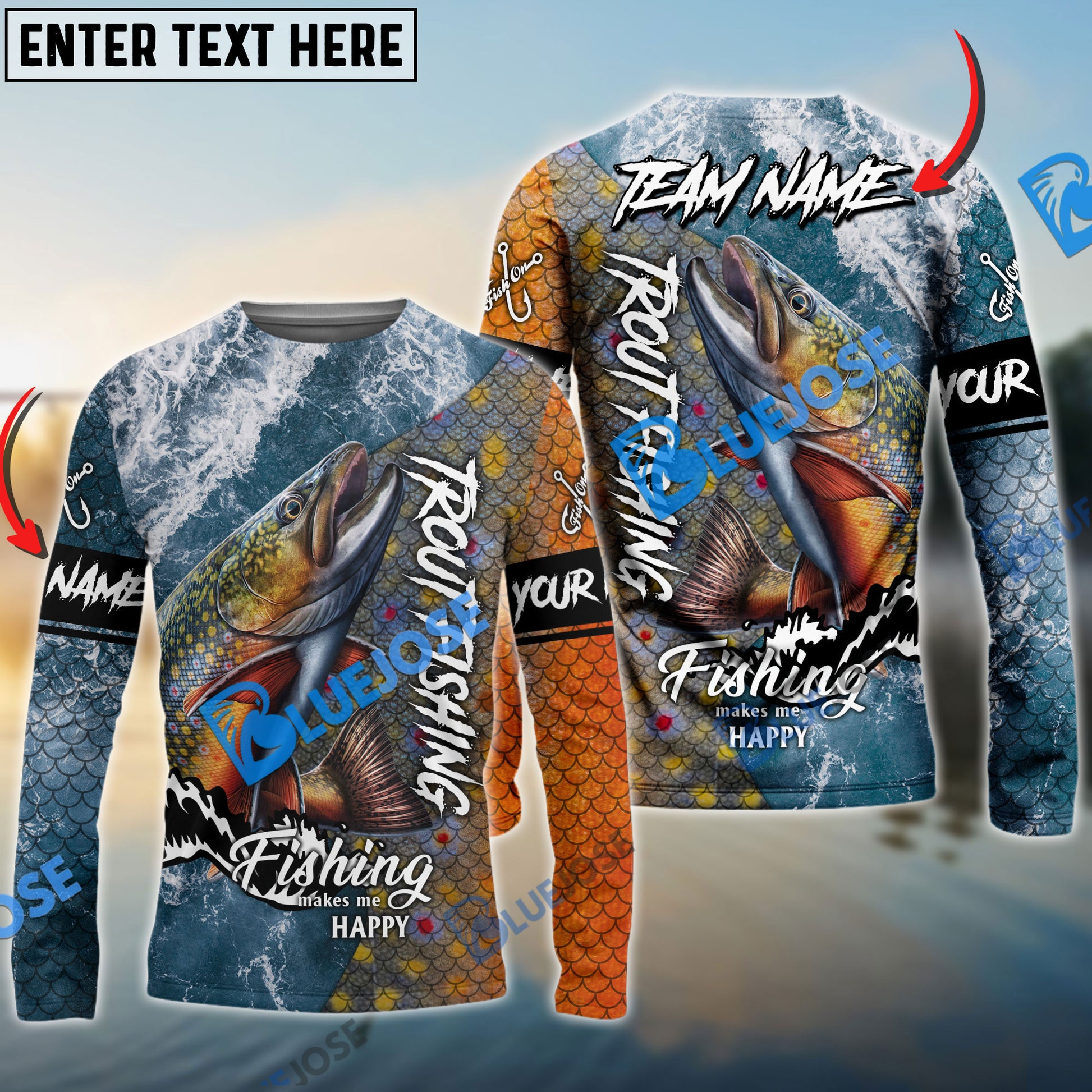 Bluejose Trout Fishing Skin Seawave Custom Name & Team Name 3D Shirts