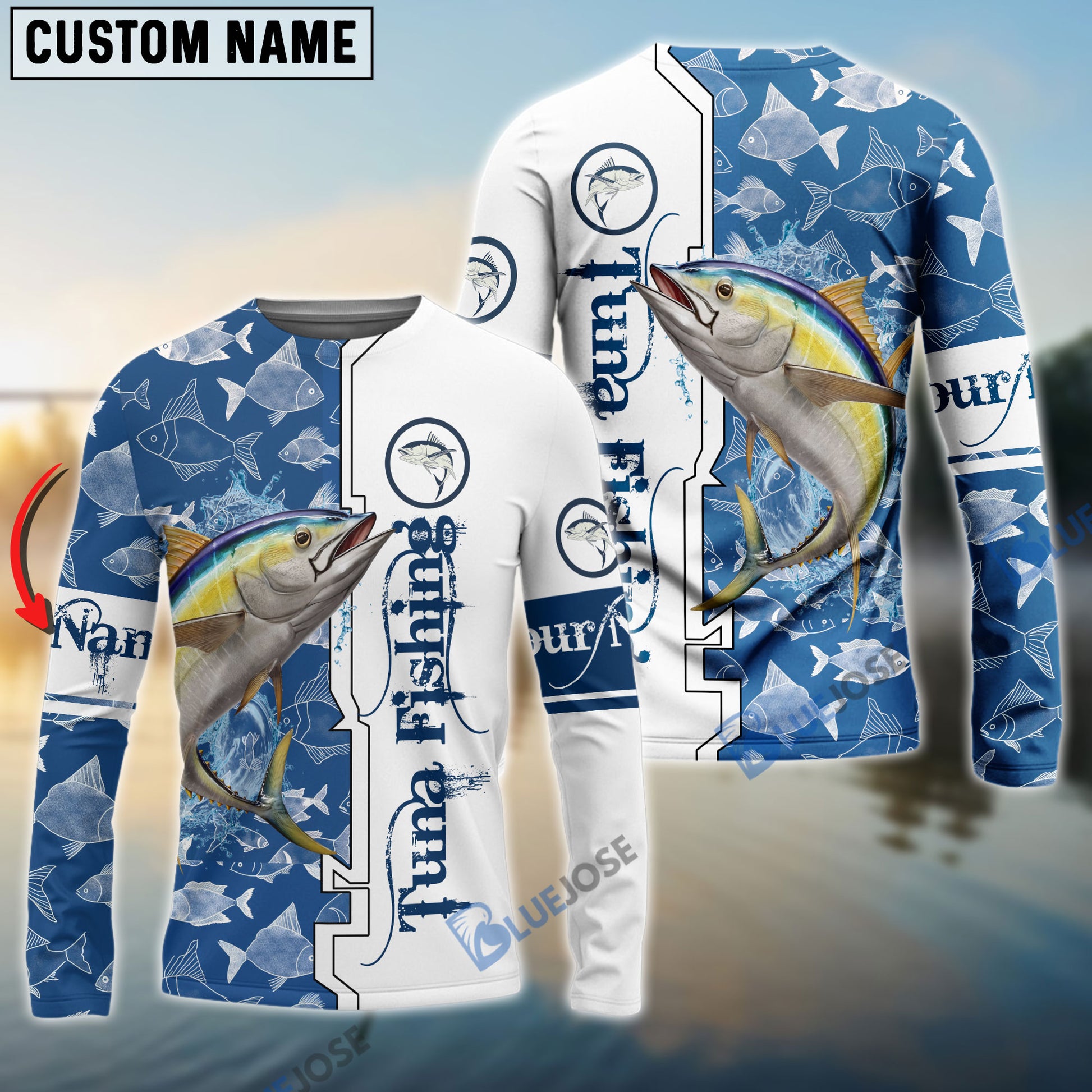 BlueJose Tuna Blue Customize Name Long Sleeve Fishing Shirts