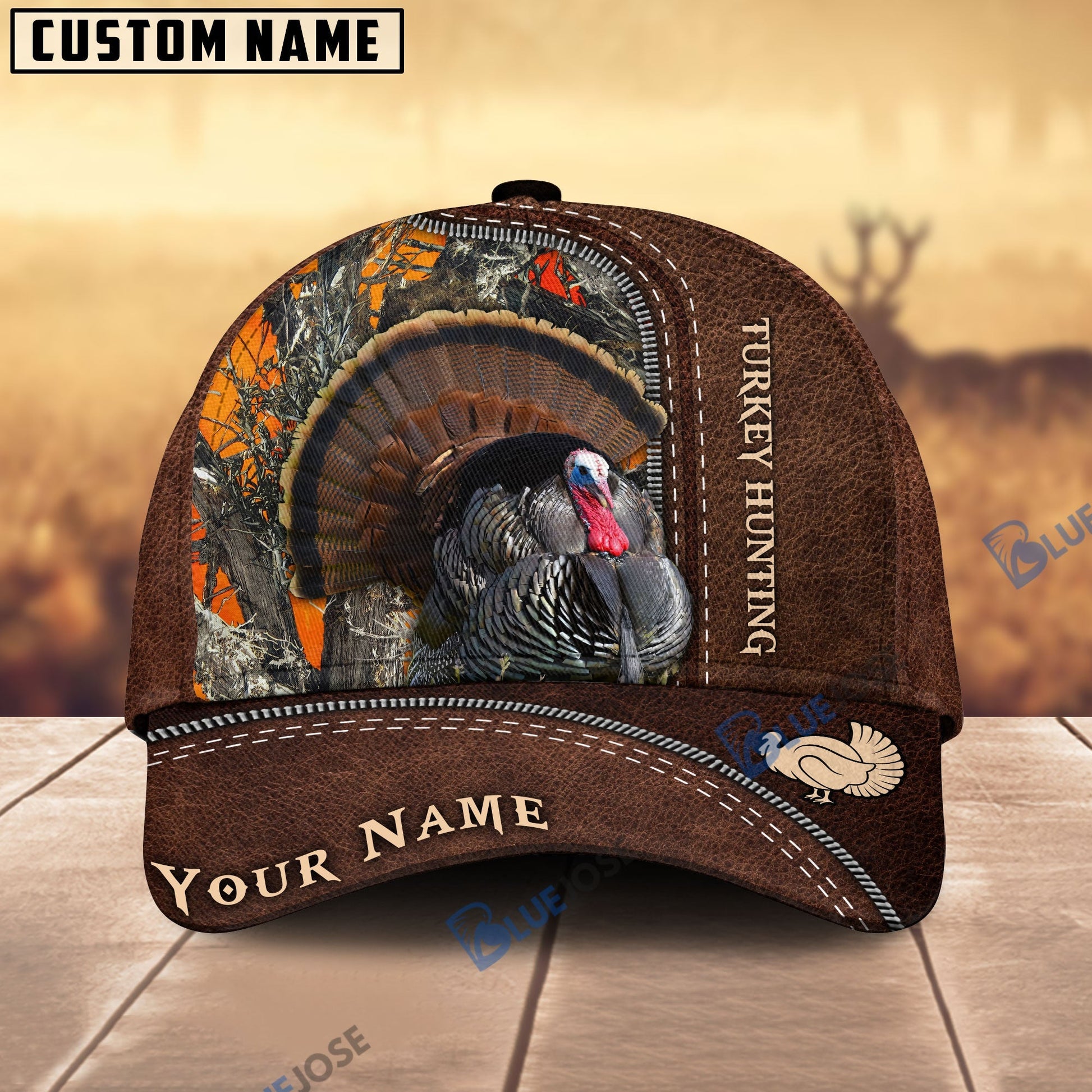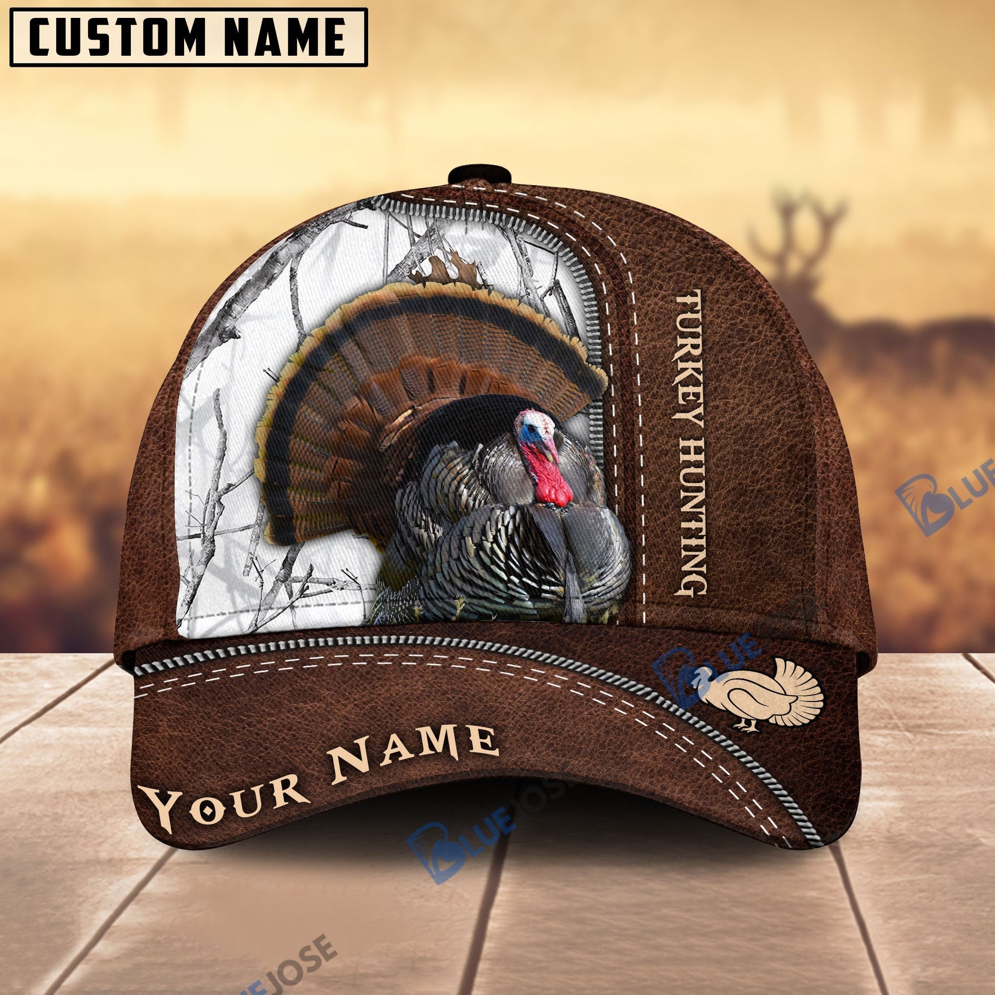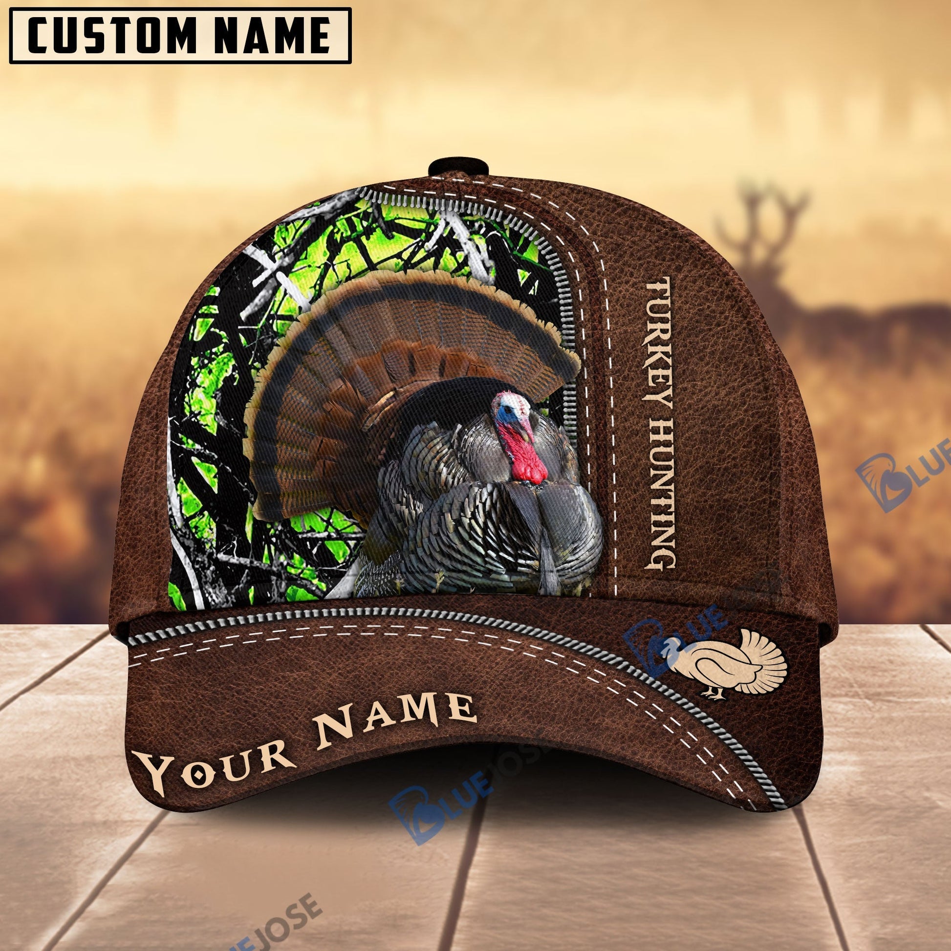 BlueJose Turkey Hunting Leather Pattern Personalized Name Cap