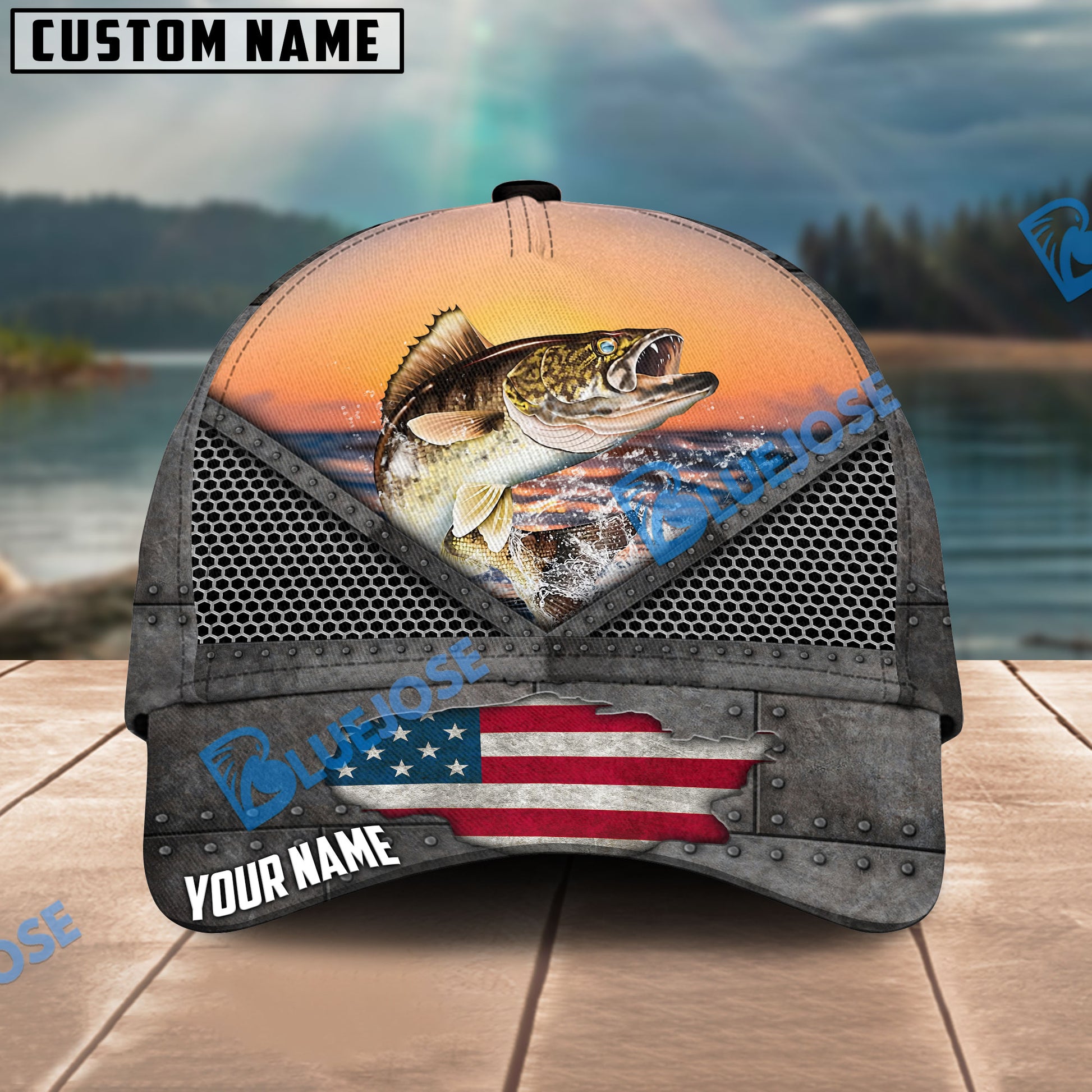 BlueJose Walleye Fishing Sunset Personalized Cap