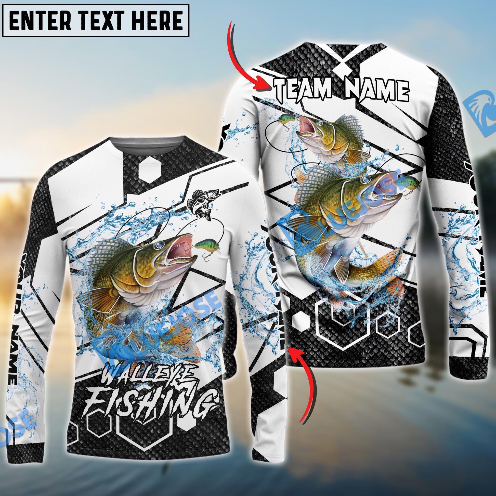 Bluejose Walleye Fishing White Gray Black Hexagon Sport Custom Name & Team Name 3D Shirts