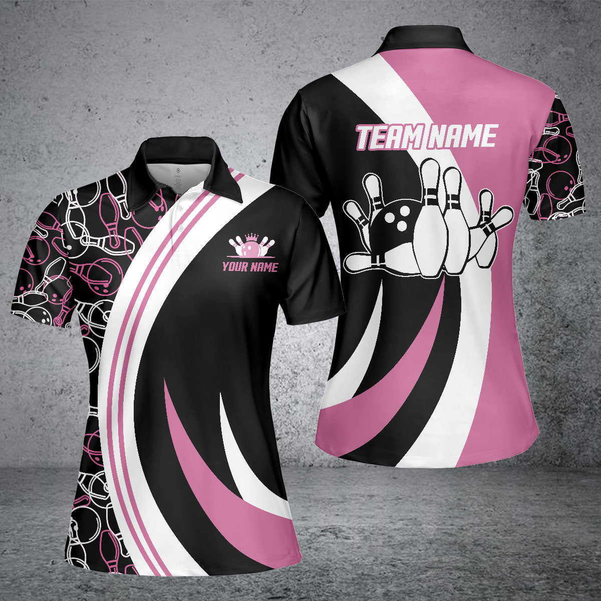BlueJoses Black&Pink Bowling Seamless Pattern Personalized All Over Printed Shirt For Women