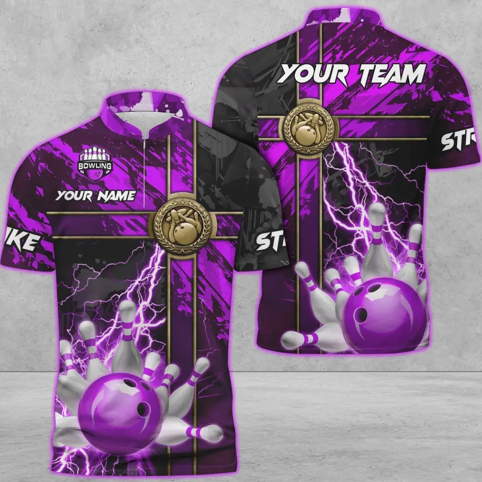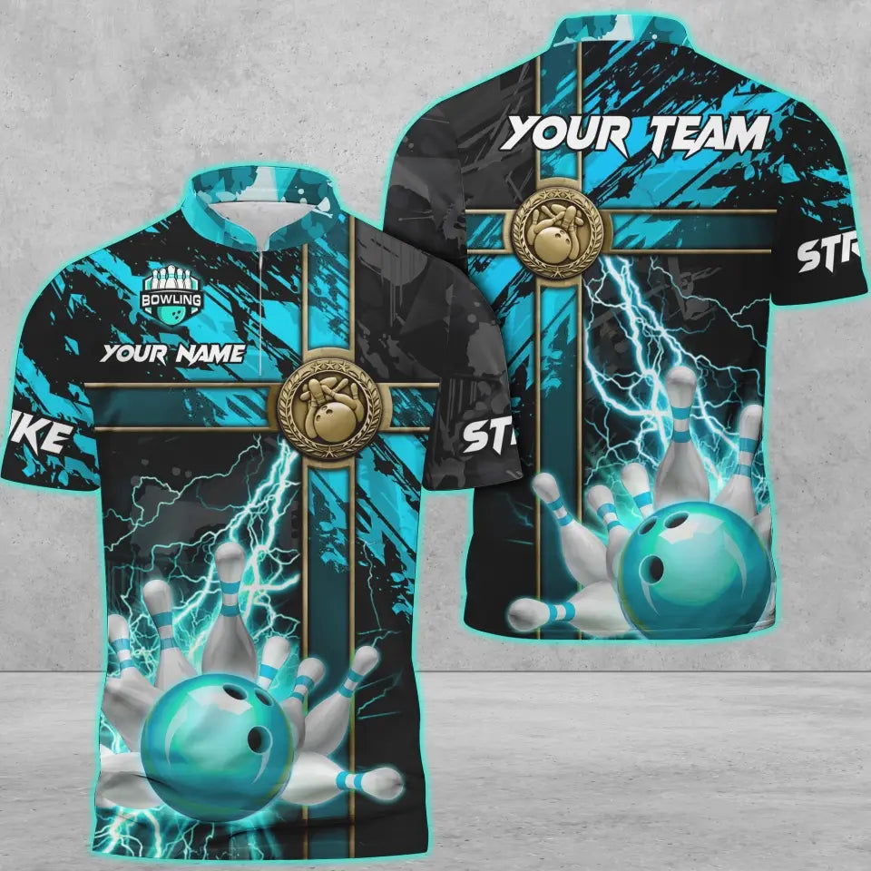 BlueJoses Bowling And Pins Abstract Grunge Texture Cross Multicolor Personalized Name, Team Name 3D Shirt