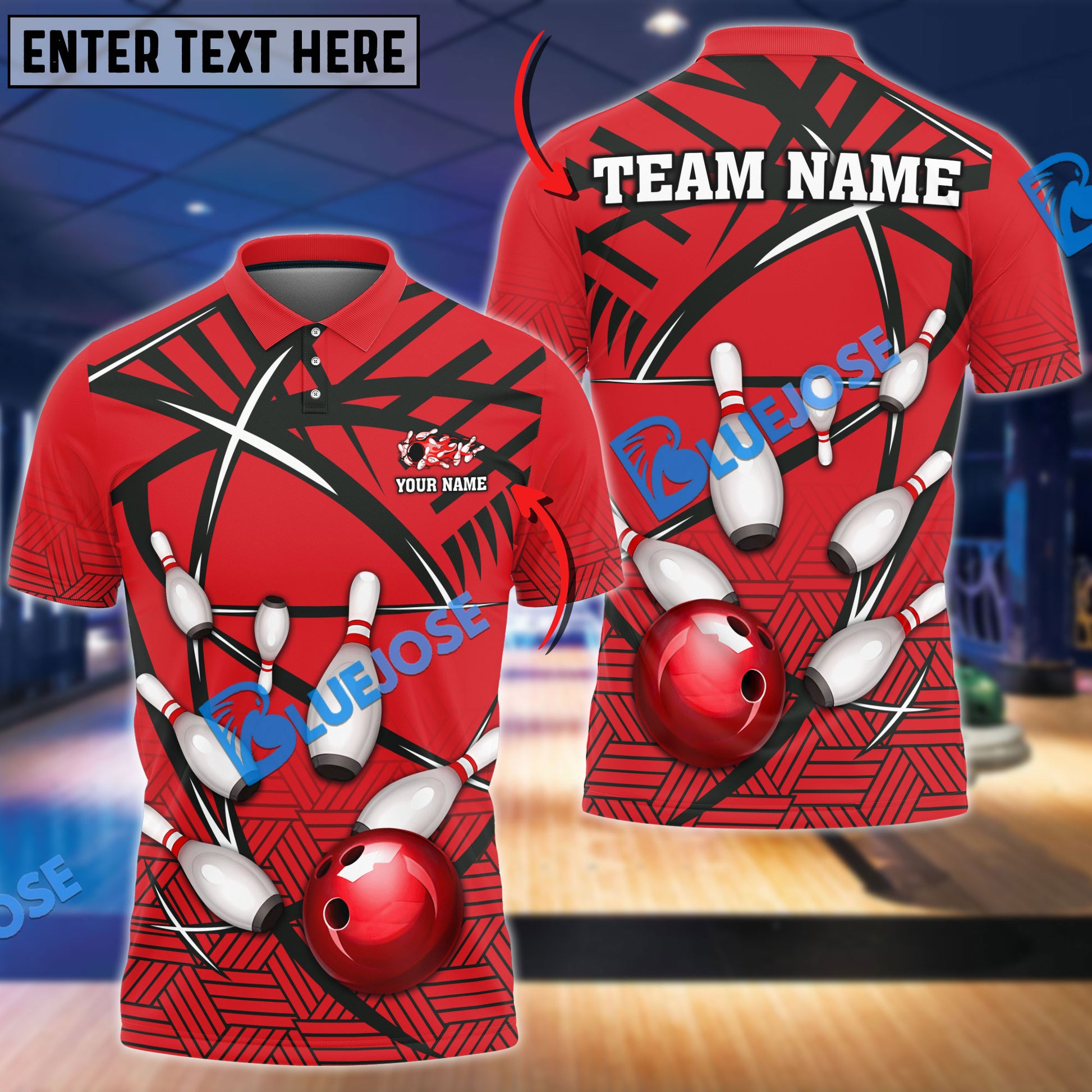 BlueJoses Bowling And Pins Black Net Pattern Customized Name 3D Shirt (4 Colors)