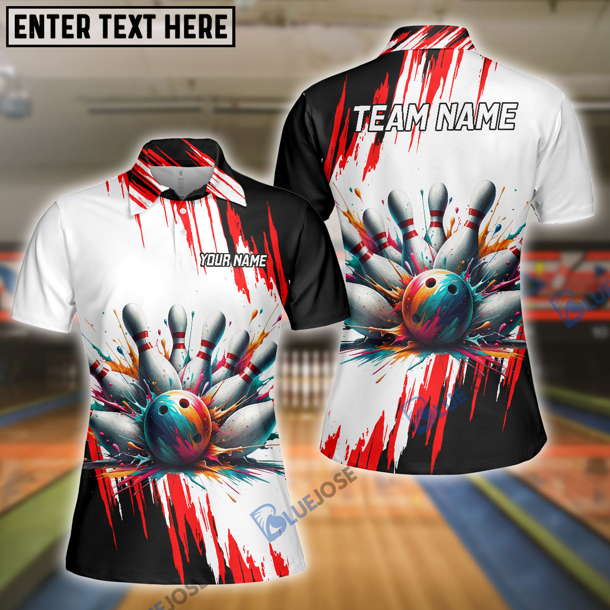 BlueJoses Bowling And Pins Black Red Customized Name 3D Shirt for Women