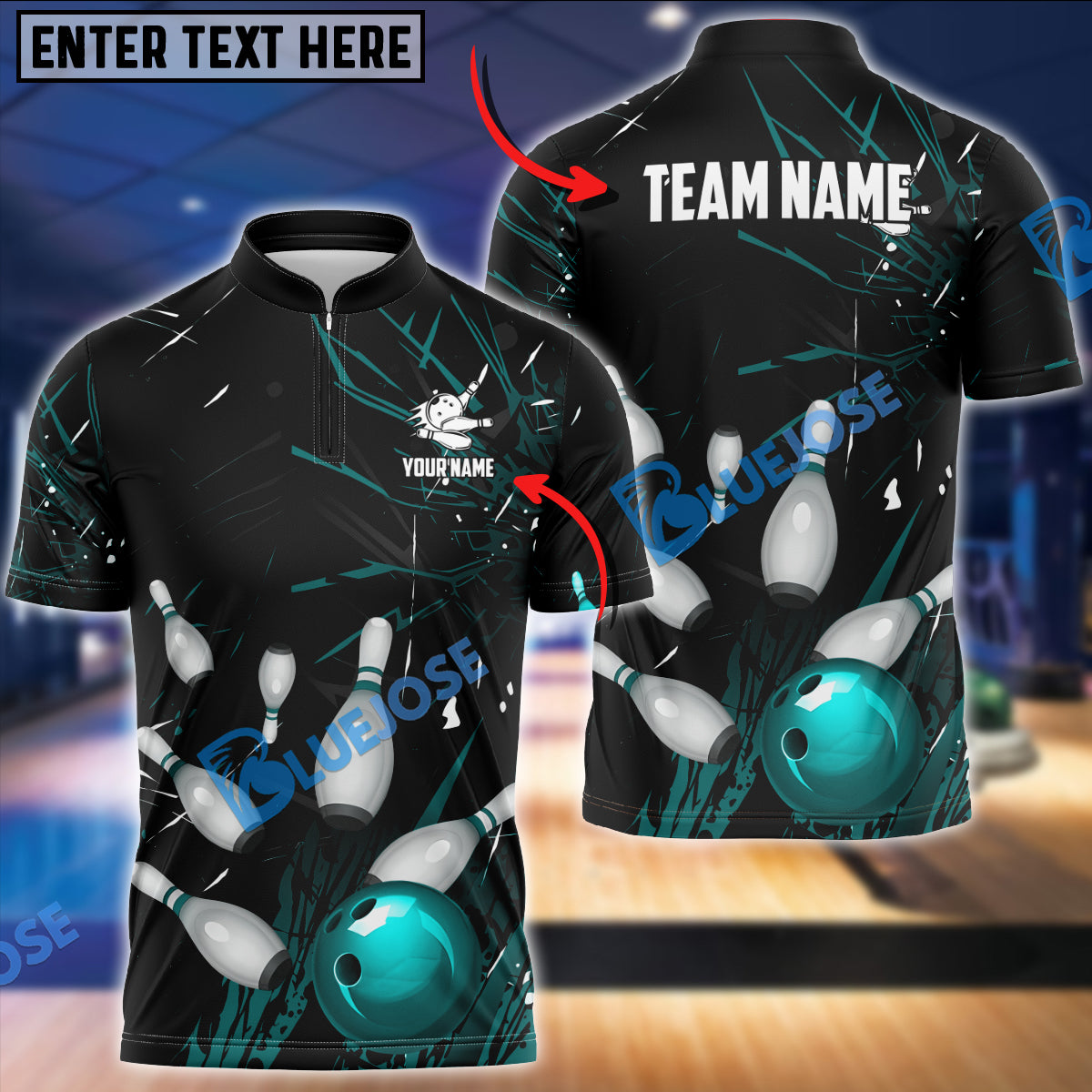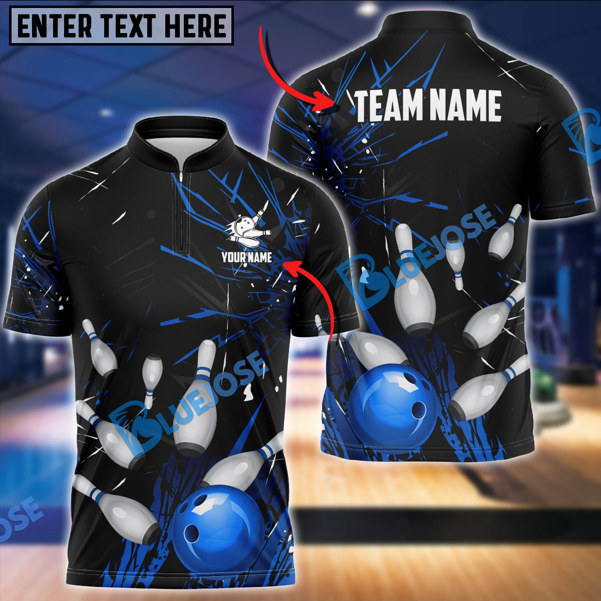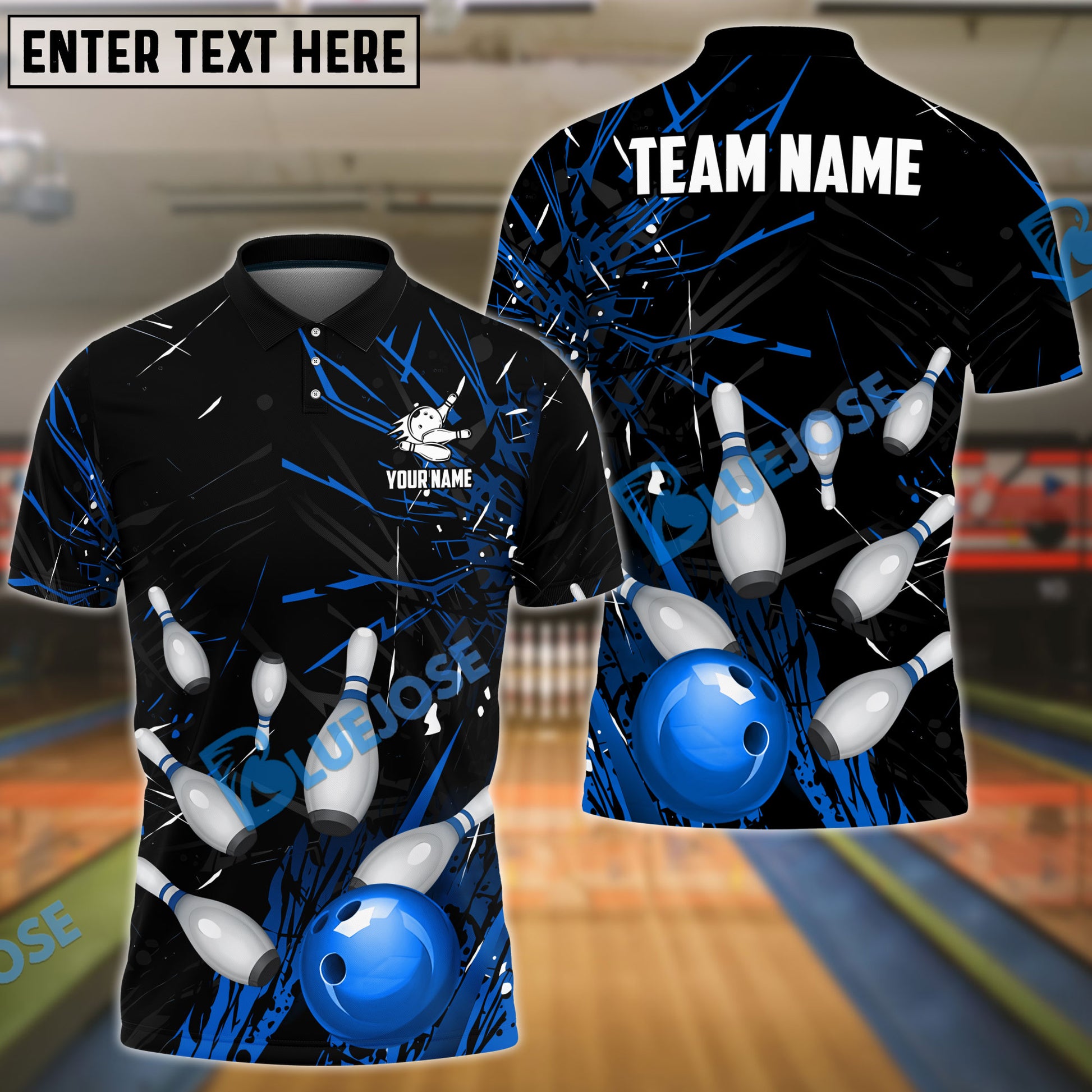 BlueJoses Bowling And Pins Break Glass Pattern Customized Name 3D Shirt (5 Colors)
