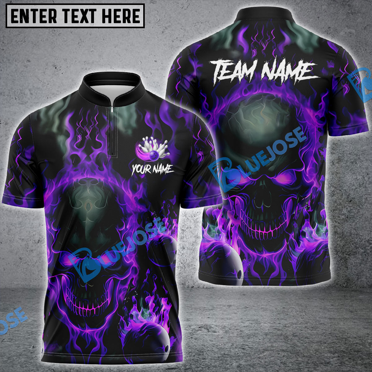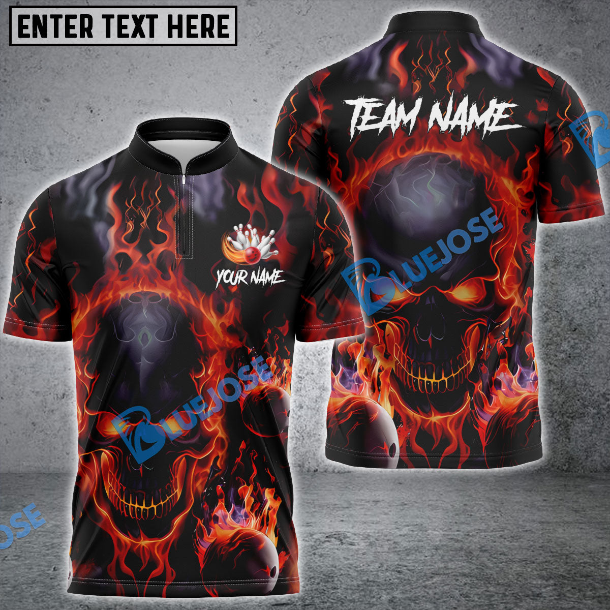 BlueJoses Bowling And Pins Flame Skull Multicolor Customized Name 3D Shirt ( 4 Colors )