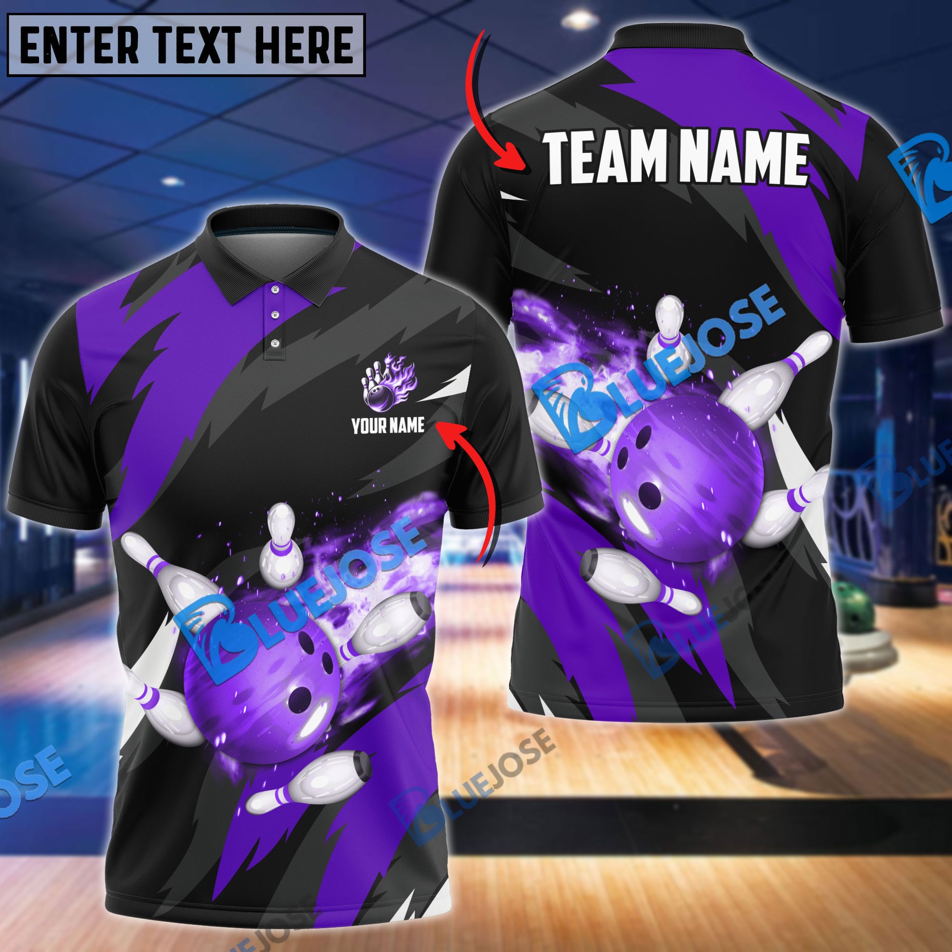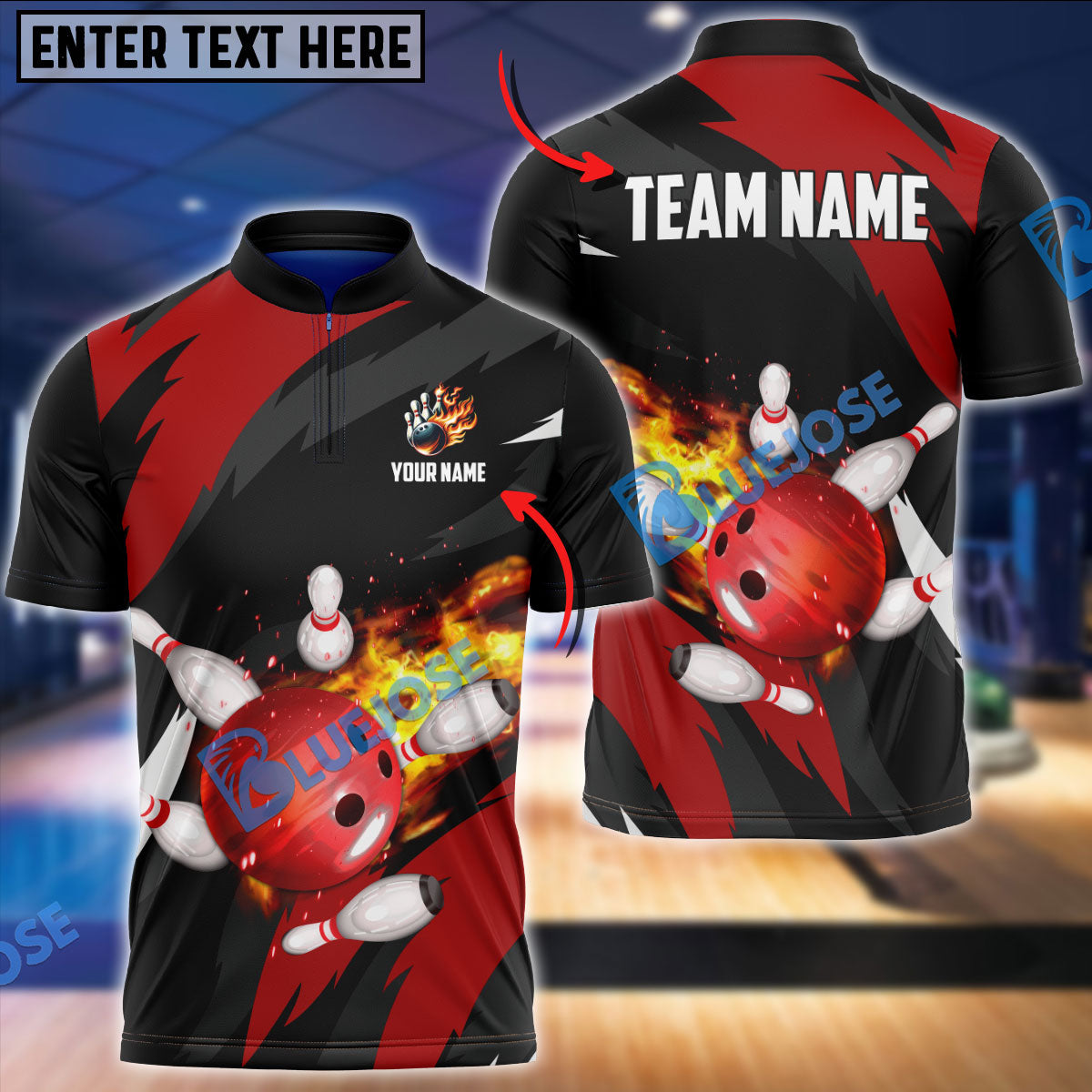 BlueJoses Bowling And Pins Flaming Throw Customized Name 3D Shirt ( 6 Colors)
